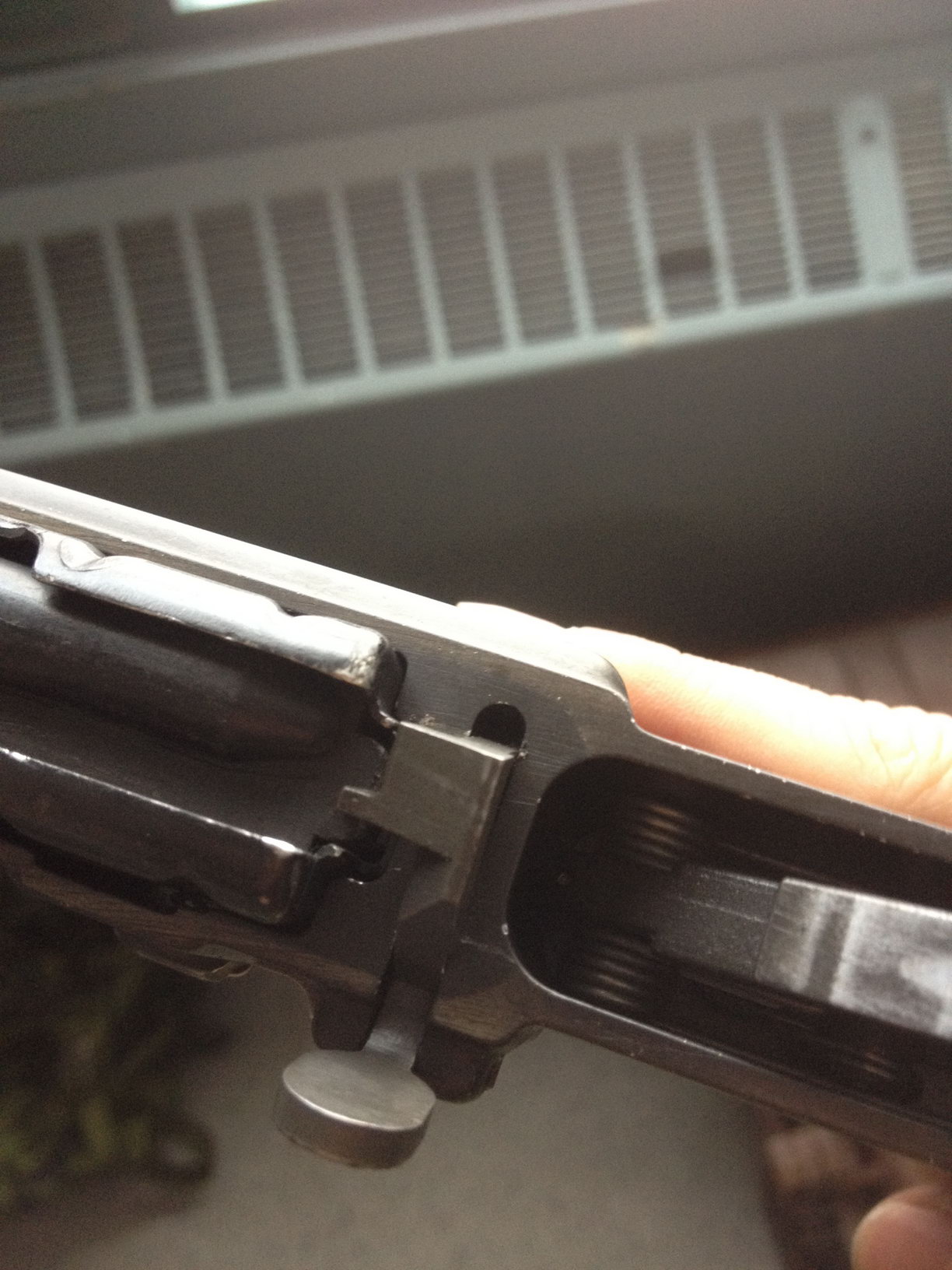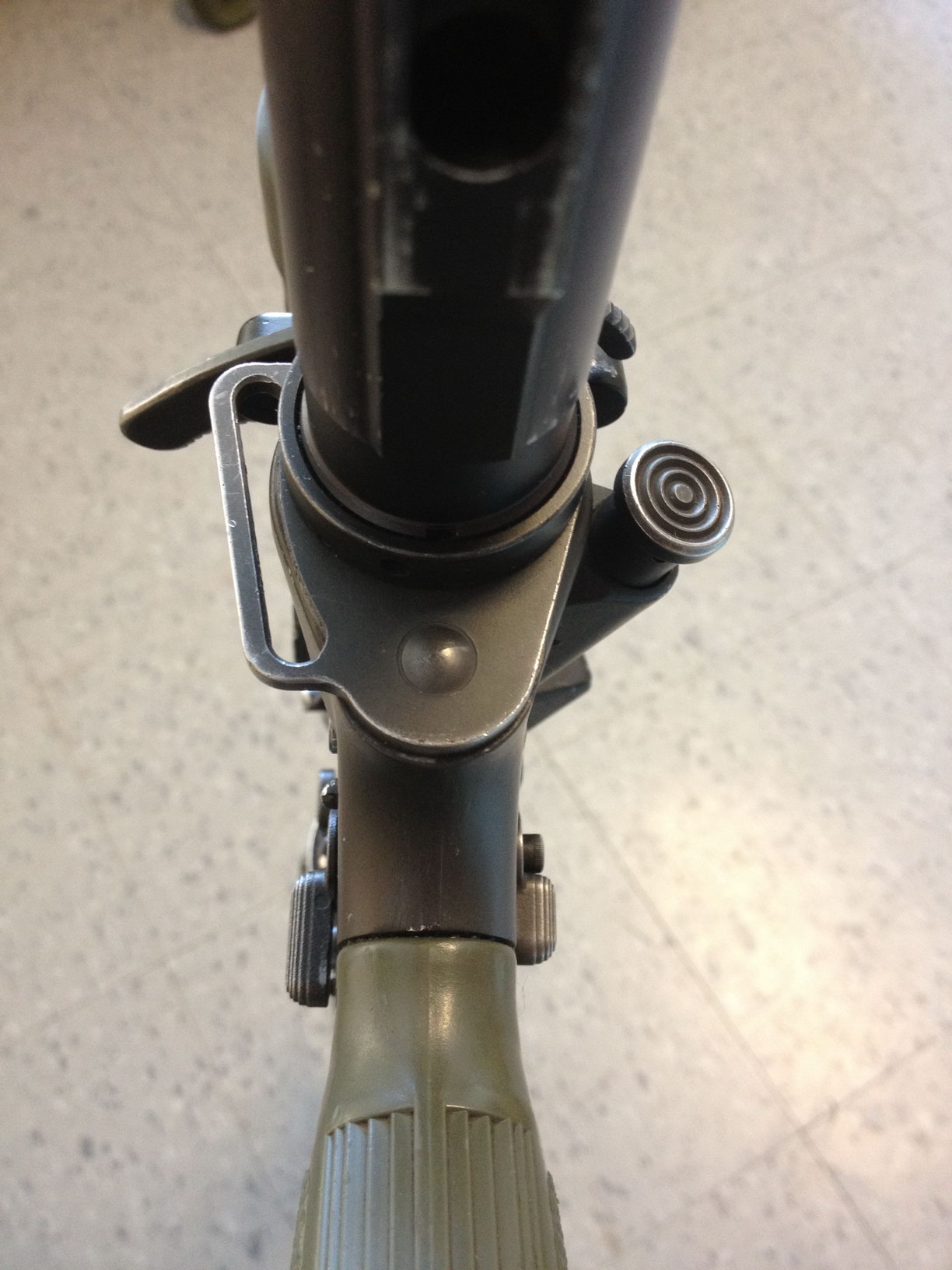 第三个问题是扩大后的拉机柄。很容易钩挂在衣服和其他装具上,甚至会因此而拉出机柄。在加拿大陆军服役的网友@黑水雇佣兵也证明这一点。他在新兵训练期间使用的是普通的拉机柄,没试过钩挂衣物因此以为是被夸大其词,但后来他有一次在13公里急行军训练时领到一支加大拉机柄的C7A2,发现拉机柄果然很容易钩挂。不过后来他在参加冬季演练时(温度约-35摄氏度),C7上枪油稍多就会结冰,拉机柄拉起来比较吃力,最极端的时候他把枪竖在地上,用脚踩拉机柄才能拉开,而加大拉机柄的踩起来就特别方便。