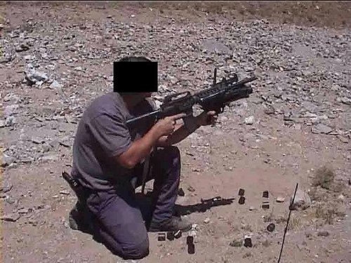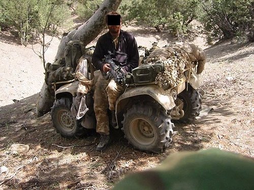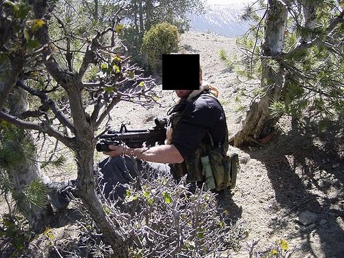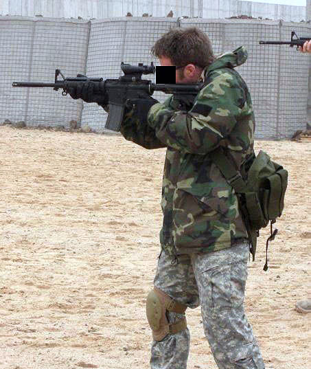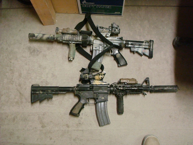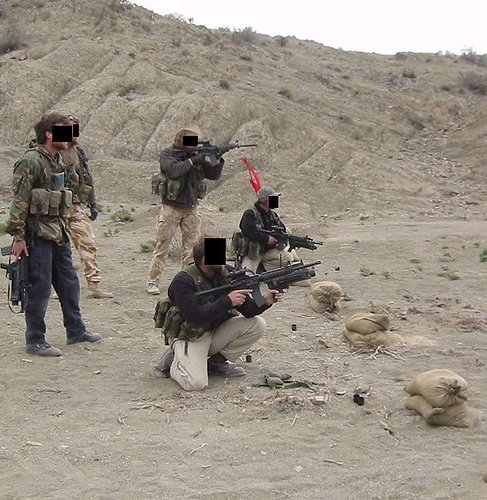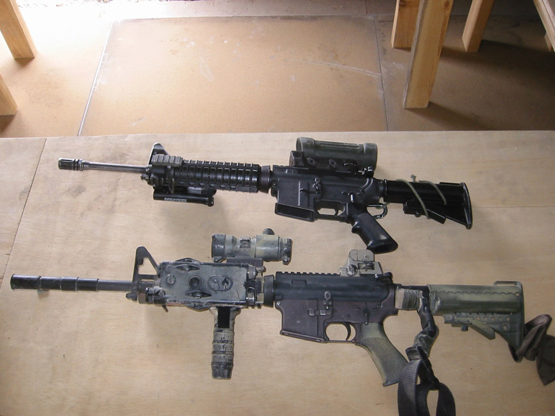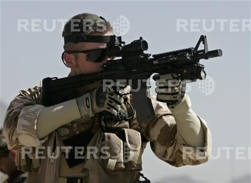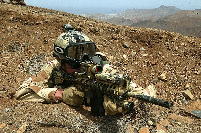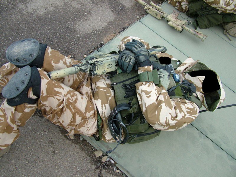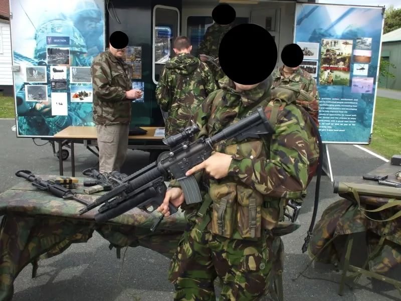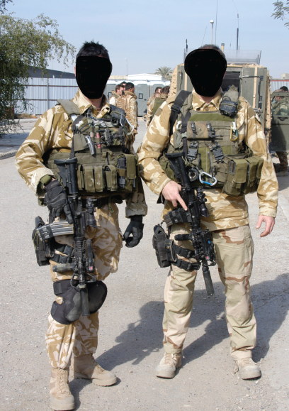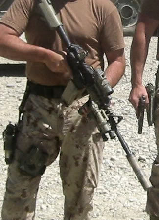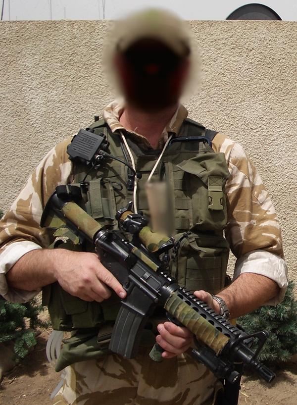 在阿富汗的SAS成员(也有些人说是SBS),注意看左图上的枪管特征正是L119A1的,而右图相同服装的士兵手上的步枪枪管特征却是M4式的。