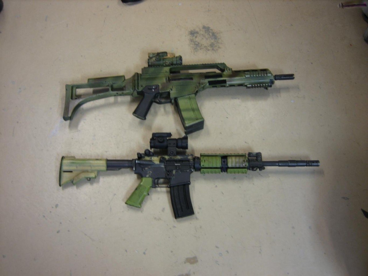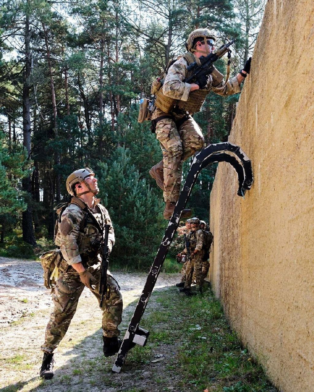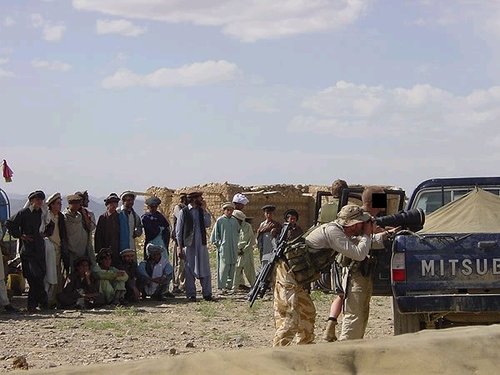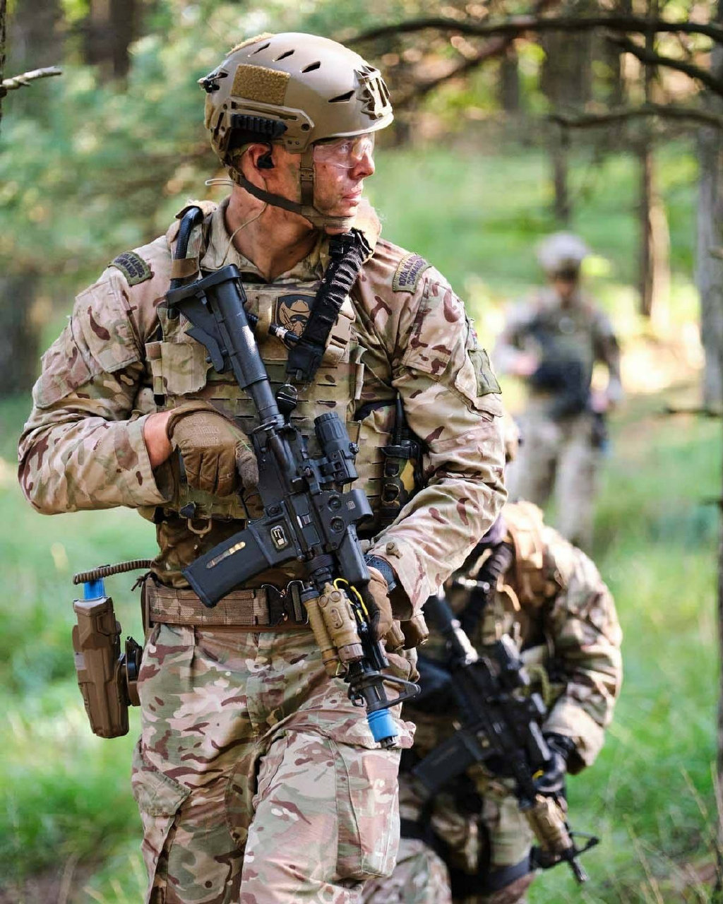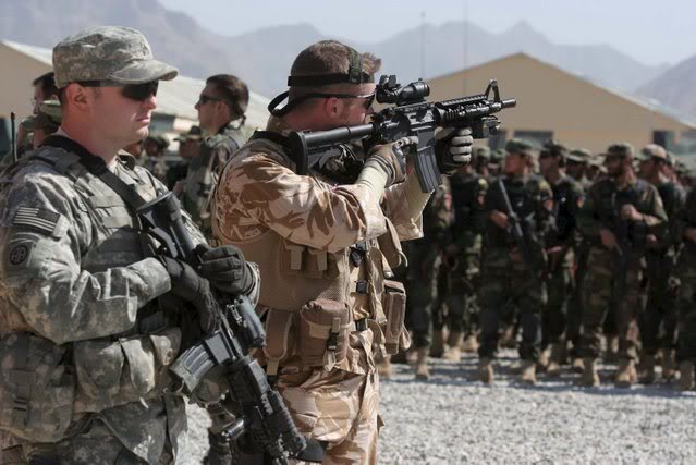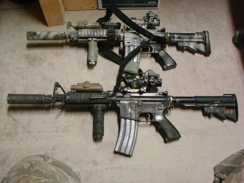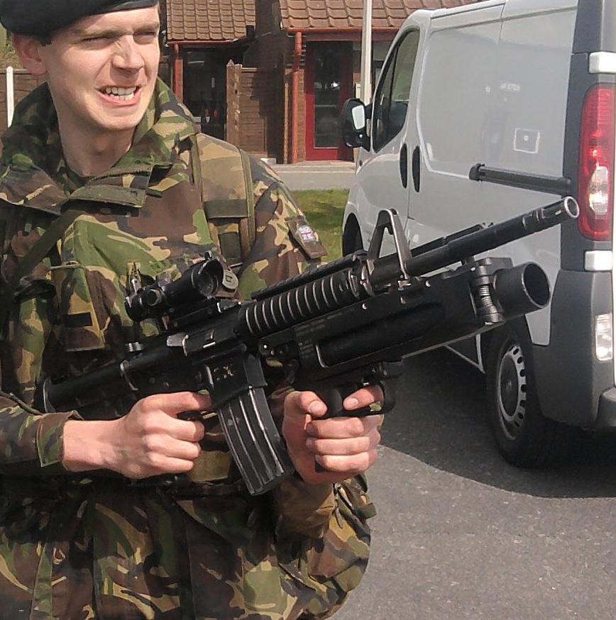 在阿富汗的SAS成员(也有些人说是SBS),注意看左图上的枪管特征正是L119A1的,而右图相同服装的士兵手上的步枪枪管特征却是M4式的。