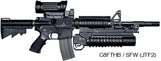 英国特种部队装备的SFW被命名为L119A1,同时又装备了HK公司的AG-C榴弹发射器而不是M203A1。