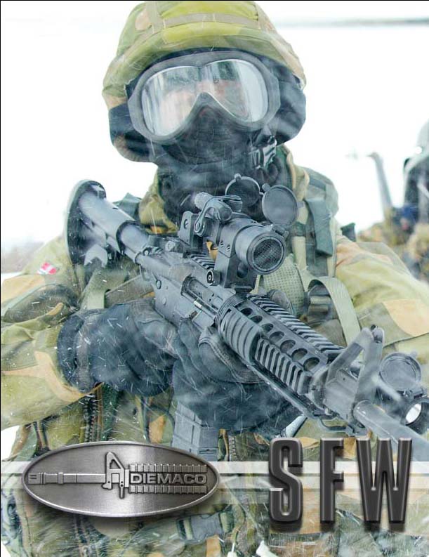 SFW是特种部队武器(Special Forces Weapon)的缩写,原称C8FTHB,即C8的平顶机匣及重型枪管型,其枪管长16英寸,介于C8和C7之间的武器。SFW的概念是源于特种部队的需求,特种部队认为C8的短枪管有较远的射程上精度有限,而C7的尺寸则过长,于是迪玛科公司就研制了这种尺寸紧凑、射击精度高的模块化武器系统。SFW的特点有: