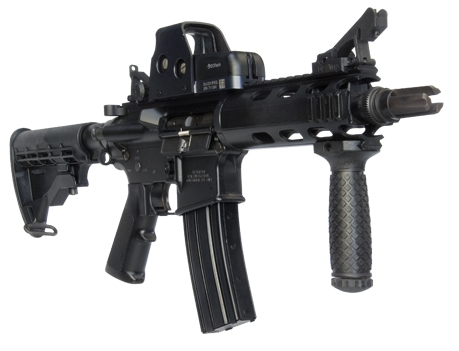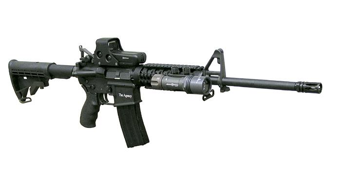 16英寸枪管的.300 BLK口径步枪,图中的消声器是假体,目的只是让较长的16英寸枪管看起来比较“帅”