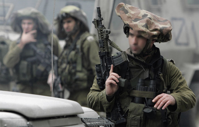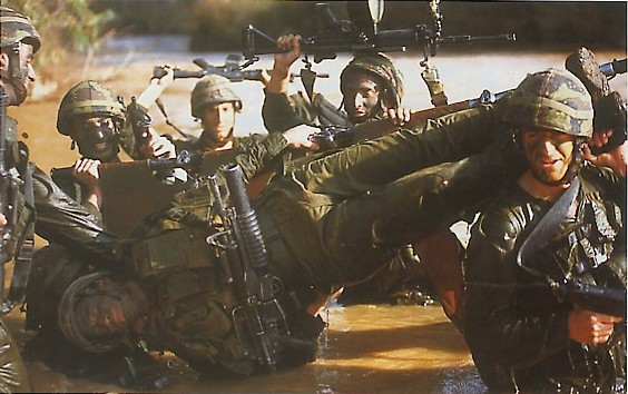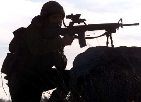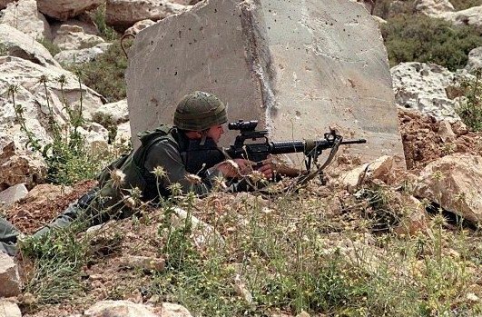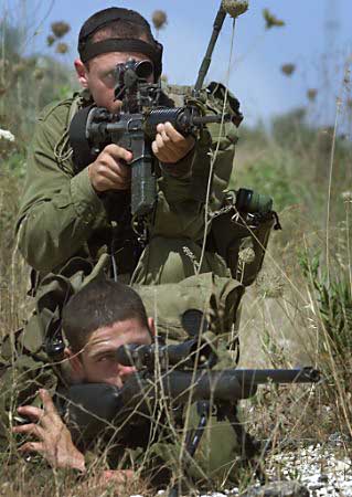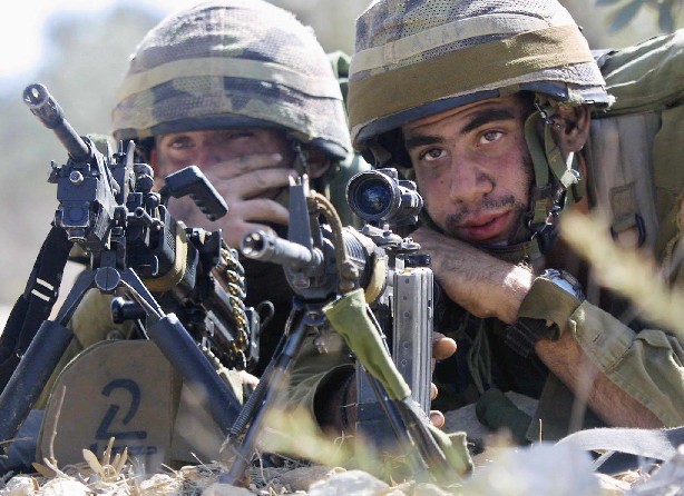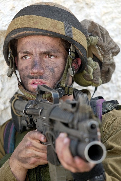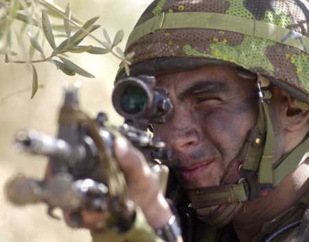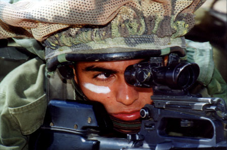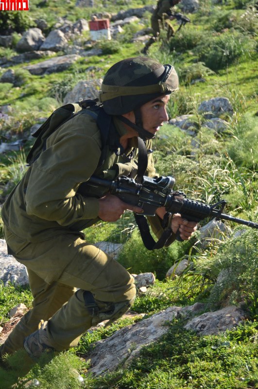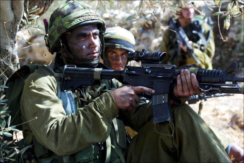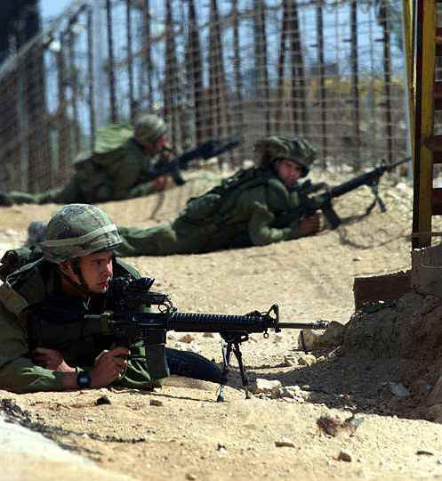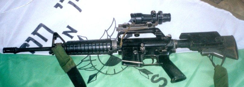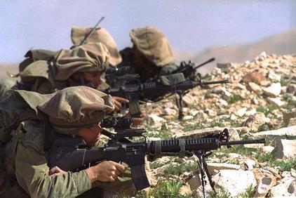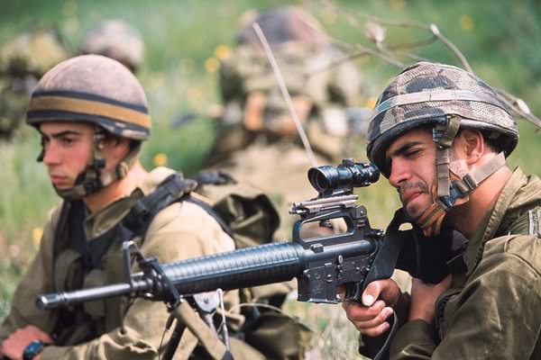 特种侦察队(T'ZASAM)在执行任务,他们的截短型CAR15有枪口防跳器。