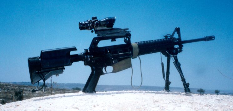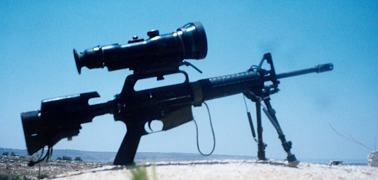 在过去,敝站最早曾把Designated Marksman这个词按照单词字面意思直译为“指定神射手”,后来又按照其表达的意义改译为“指定神枪手”,现在又重新用回“指定”的叫法。关于Designated Marksman的解释,在介绍SAM-R和SDM-R中已经提到,但Designated Marksman的概念以色列人比美国人更早应用,而Designated Marksman System就是为班组内一名指定的神枪手提供安装有白光和夜间瞄准镜及稳定装置的专用步枪,使他能配合他的队员准确地射击较远距离上的目标,也就是班一级的狙击手。