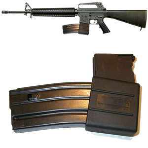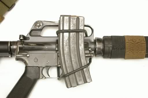 以色列国防军所使用的各型M16中,不时可以看到一种类似于弹匣并联器的装置(如下图),有些人也以为这就是一种弹匣并联器。但其实这只是一种空枪携带弹匣的装置,是以色列的军事体制下特有需要下的一种附件,被称为“弹匣携带器(Magazine Holder)”,而且还有多种形号。由于以色列几乎是全民皆兵,许多平民也是预备役,平时这些“预备士兵”经常背着枪支出入公众场所,而且还带着装满子弹的弹匣。为防止意外发生,以色列国防军规定,在人口密集地区携带步枪不能上膛,而且弹匣也不能插在弹匣座上。但万一发生意外时,随时需要插上弹匣开枪射击,于是就需要一种把实弹匣挂在枪上但又不会意外上膛的装置。一开始,最简单的做法只是用绳子或铁丝把弹匣挂在枪上,后来就企业设计制造了一些可以像弹匣一样插在枪上的装置,这个装置又能像弹匣并联器一样把一个弹匣插在上面。这样当需要上膛射击时,只要像卸弹匣一样卸出这个装置,手一翻再把弹匣插入,就可以上膛了。