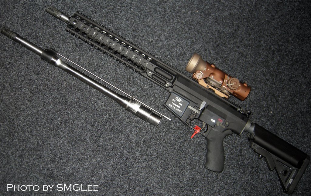 在LMT的官方网站上,既卖只包括枪管/活塞组和新枪机的改装套件,又卖包括整个MRP上机匣的改装套件,也卖活塞式的整枪