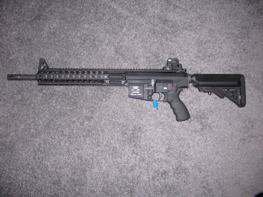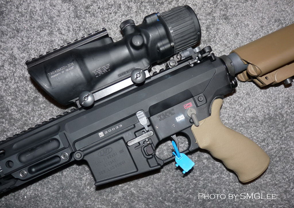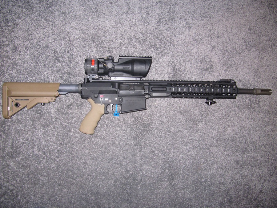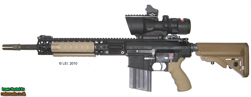 LMT的LM308MWS是7.62mm NATO口径AR式步枪。在2010年,英国陆军采用了20英寸型的LM308MWS作为班组神枪手步枪,定型为L129A1。花了一百五十万英镑,订购了440支配用ACOG TA648瞄准镜的L129A1。