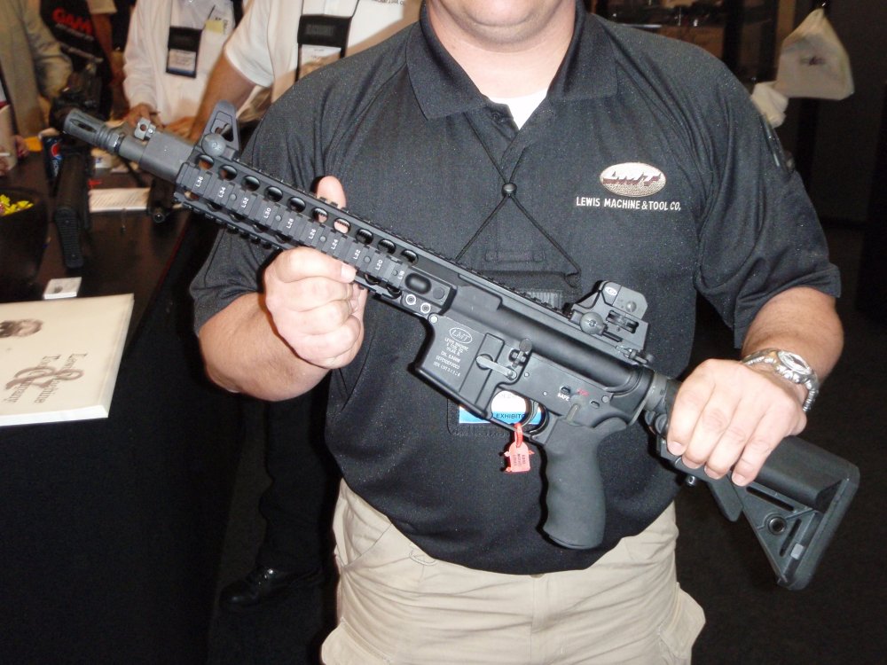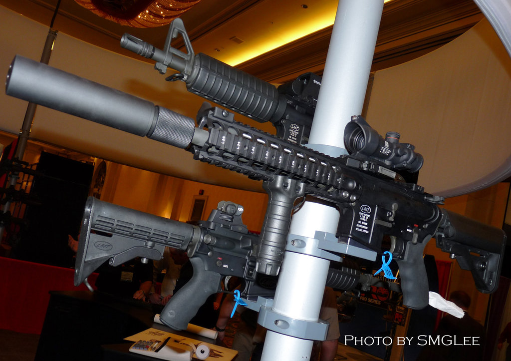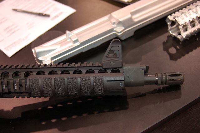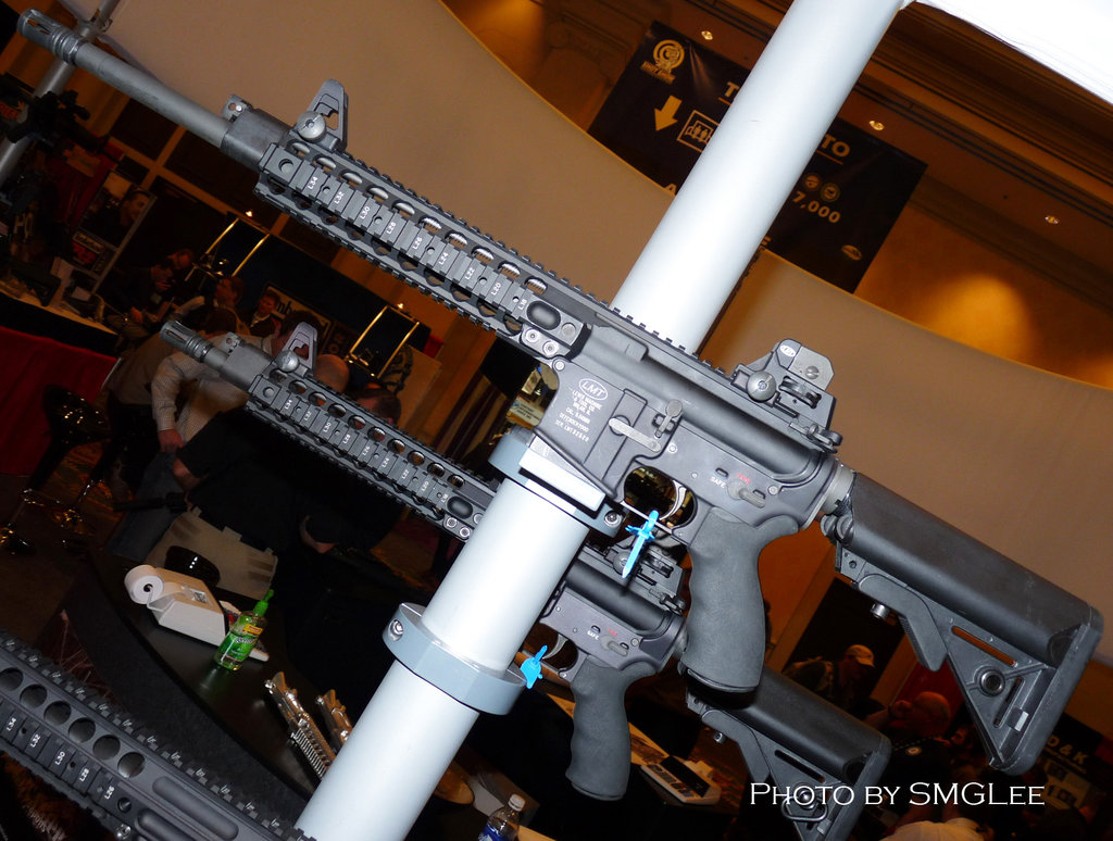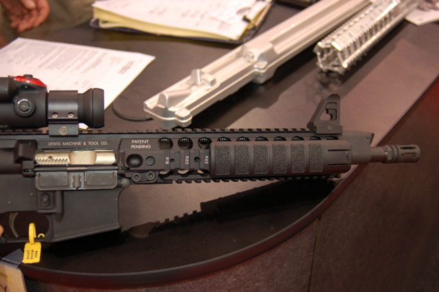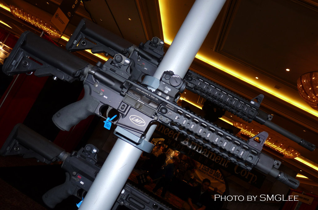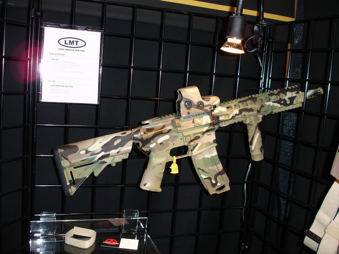 在SHOT SHOW 2009上展出的LMT MRP导气活塞系统样枪,有5.56和6.8SPC两种口径