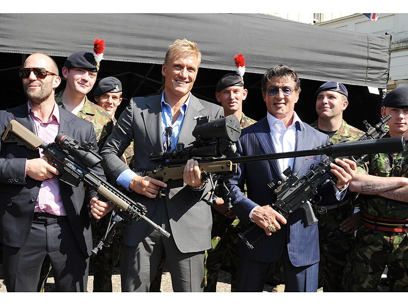 《老头儿敢死队》演员到英国军营做宣传时的照片,L129A1出镜