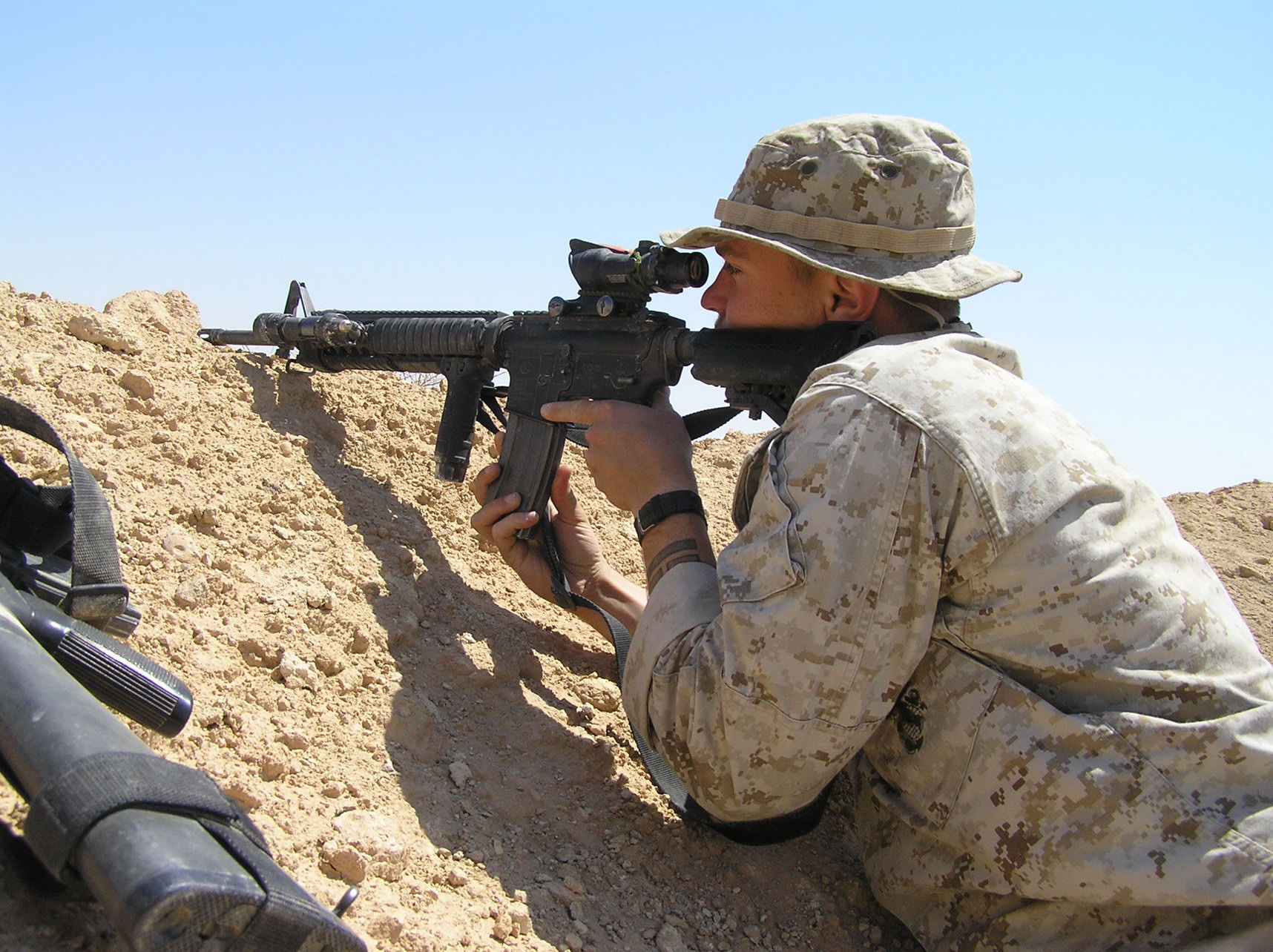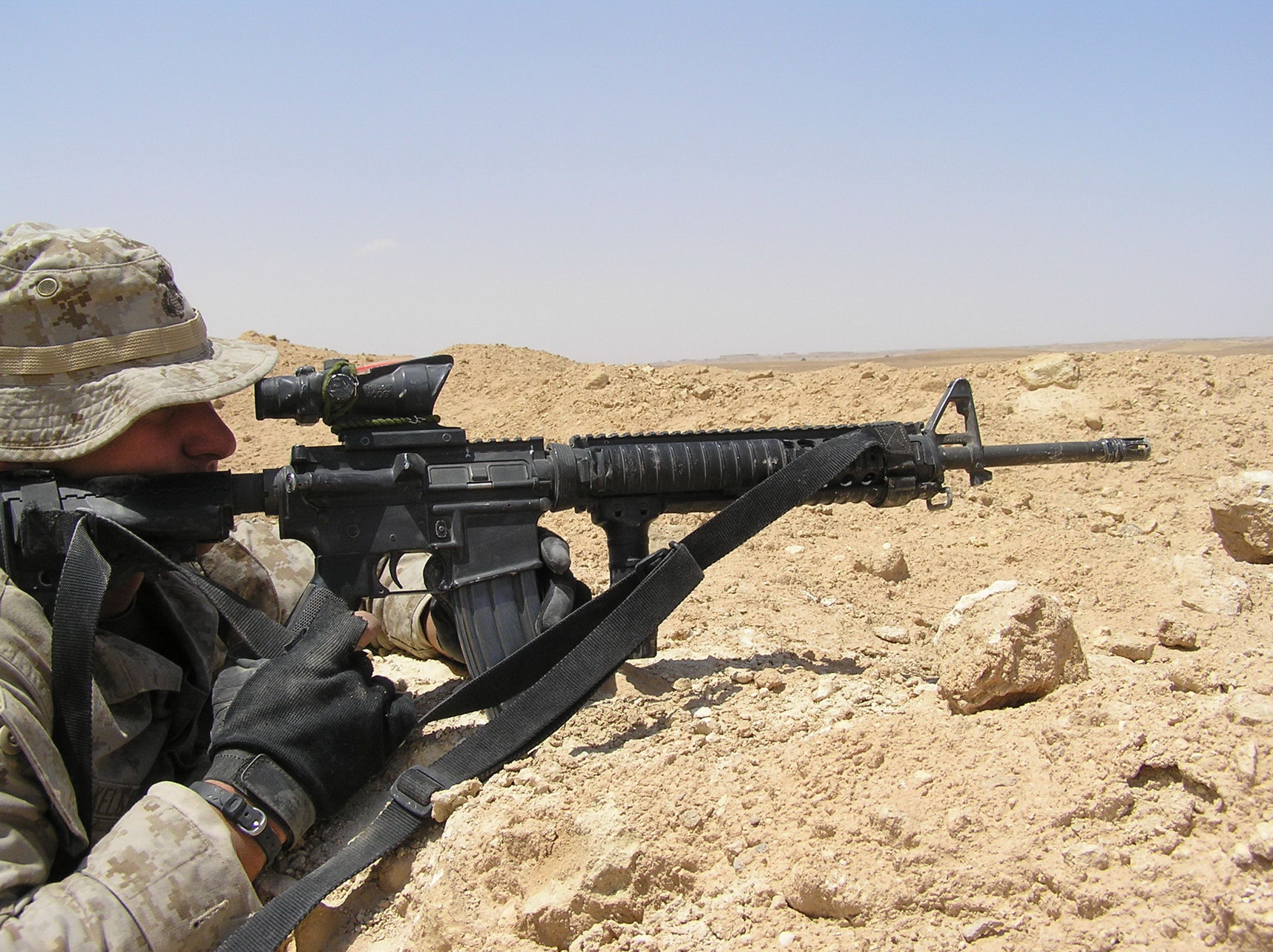 然而,海军陆战队仍然是以M16A2为主要武器,直到2003年伊拉克战争开战前,才紧急运送了31,000把M16A4到伊拉克,开战后,有更多的M16A4送到科威特,但由于部队已经开拨前线,结果直到正面战斗结束前一直留在科威特。由于数量不足,主要是作为SAM步枪,而陆军的第三机步师早已全面换装M16A4,看来陆军虽然也意识到14英寸枪管不可能全面代替20英寸枪管。不过有意思的是,这次的M16A4由两家供应商提供,供应陆军的是柯尔特,而供应海军陆战队的是FNMI,看来陆军是铁了心不向FNMI订购制式步枪了。其实最初试用时,也只是向柯尔特极少量订购M16A4,而一开始的大宗订单,都是向FNMI下的。