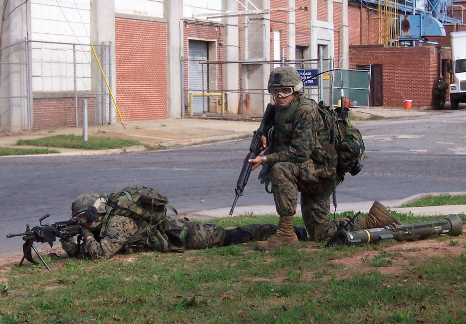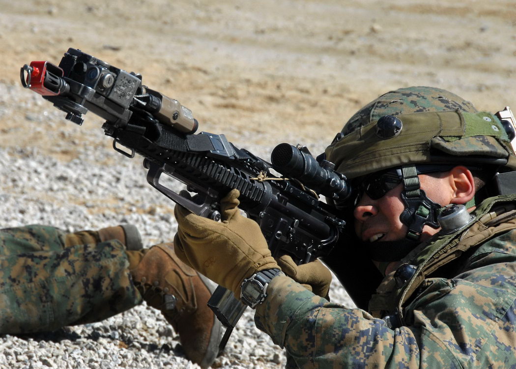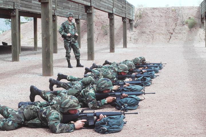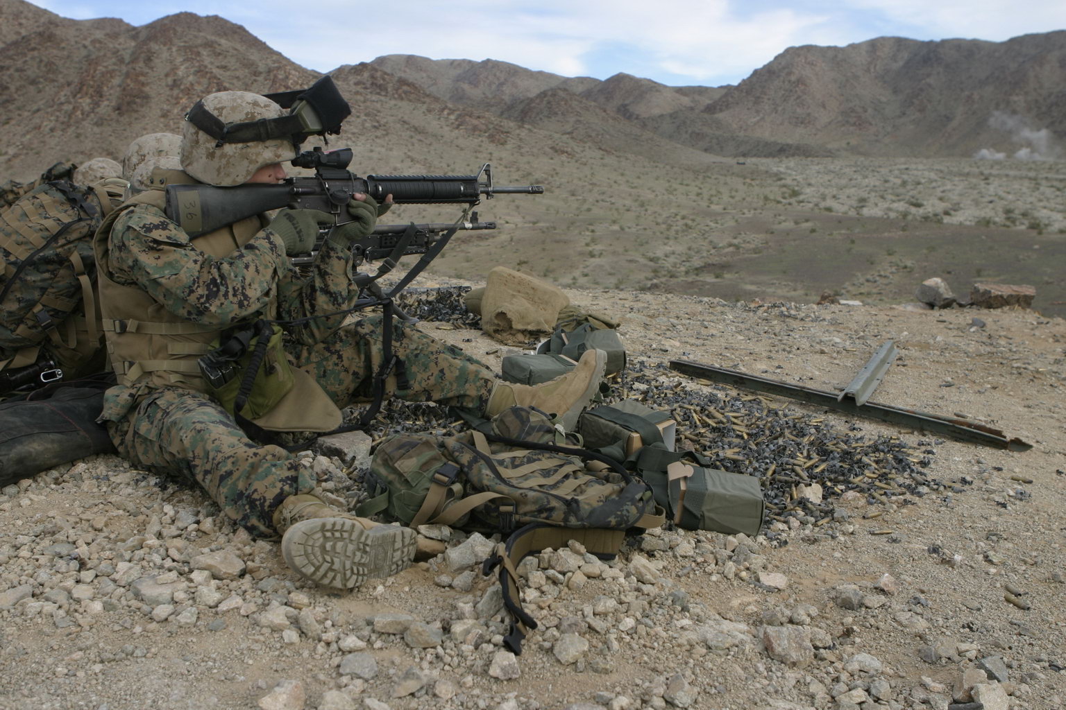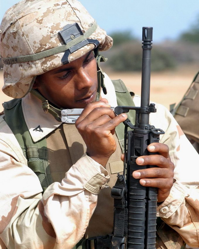 在美国本土地接收了M16A4后进行练习的海军陆战队员(USMC图片)