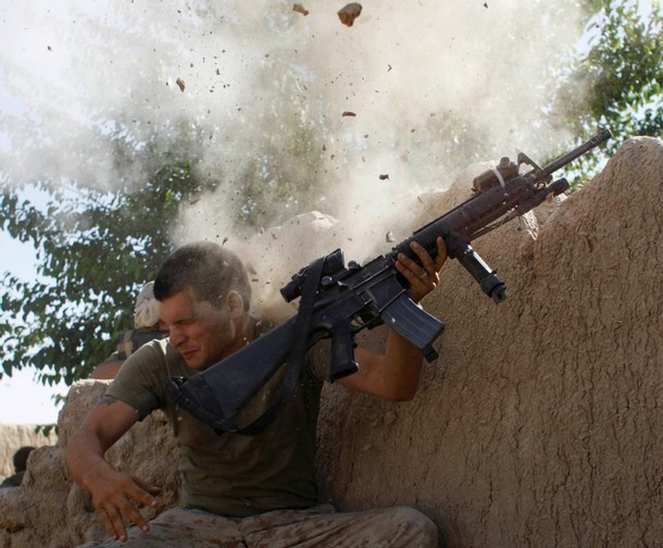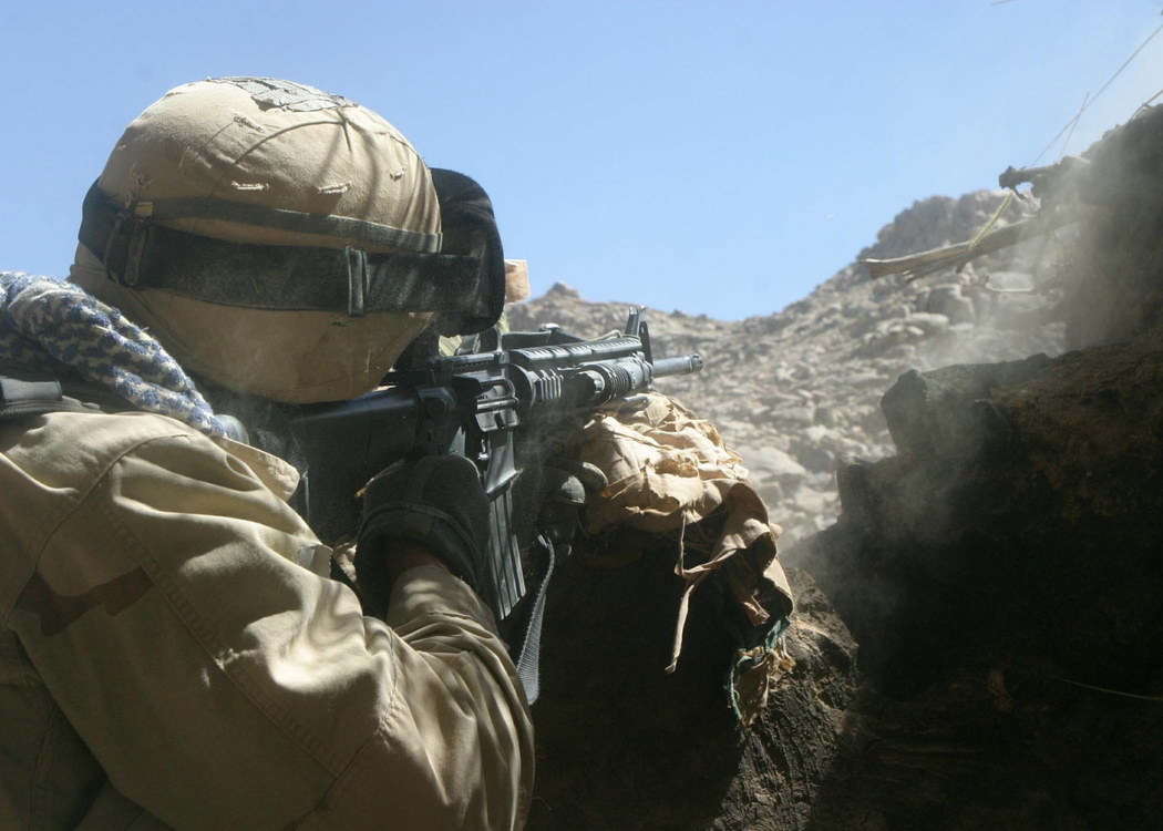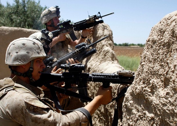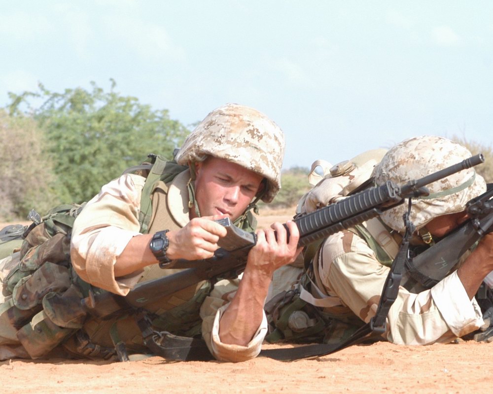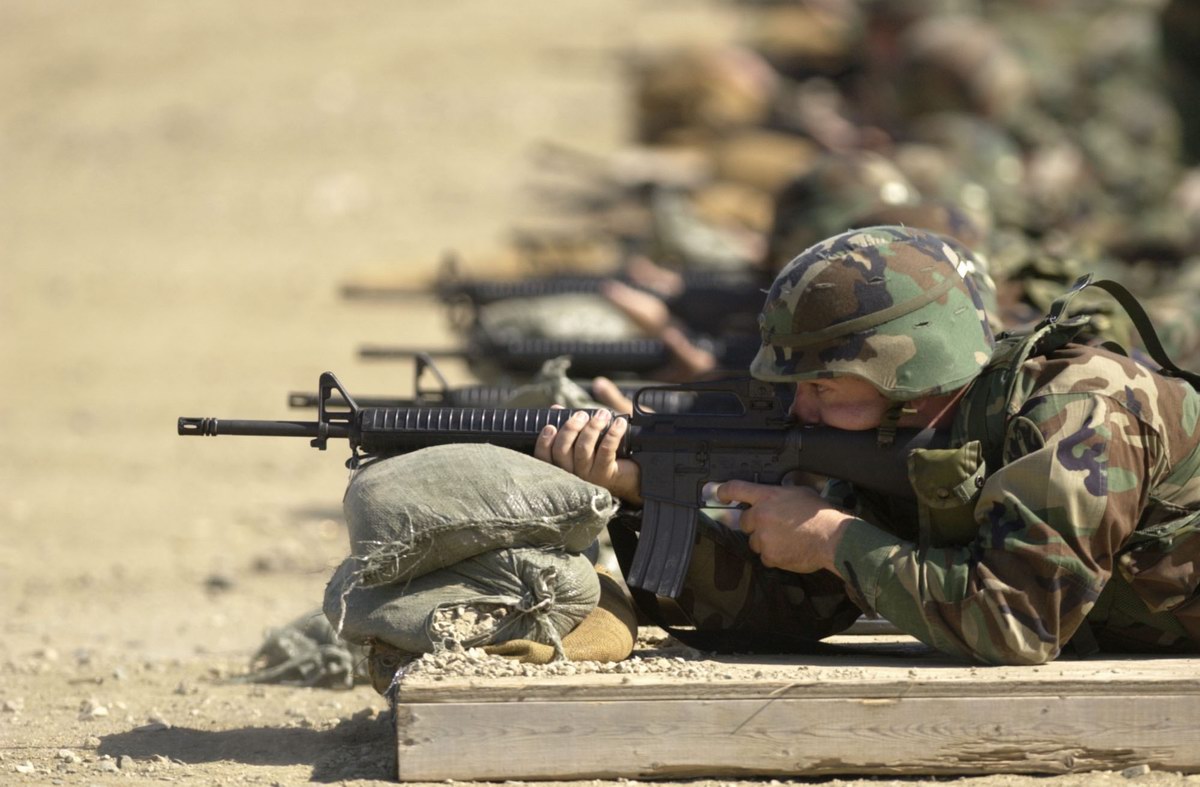在美国本土地接收了M16A4后进行练习的海军陆战队员(USMC图片)