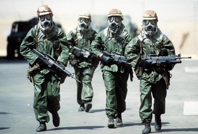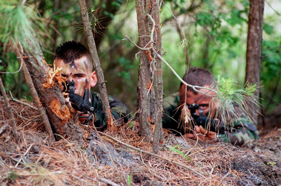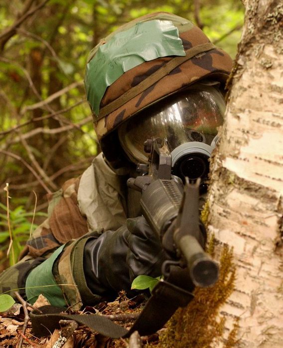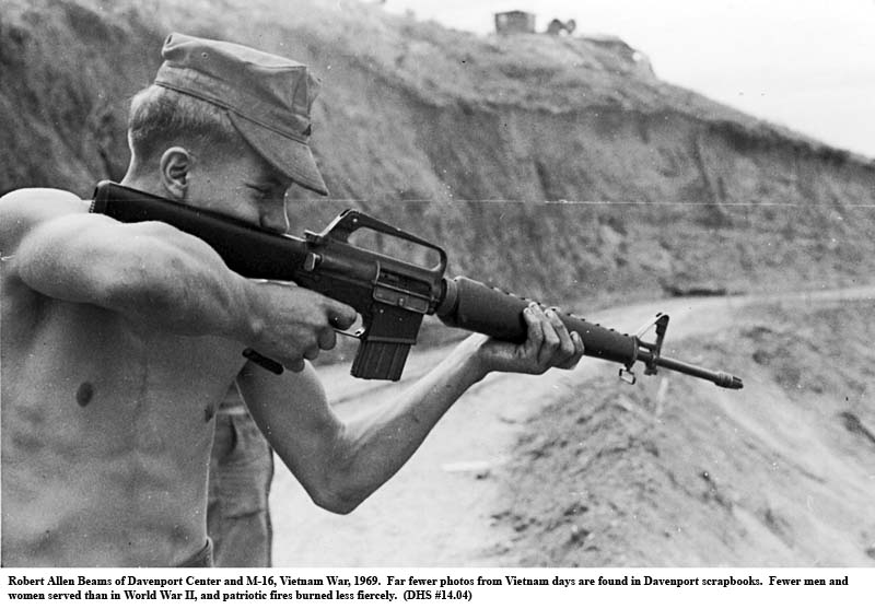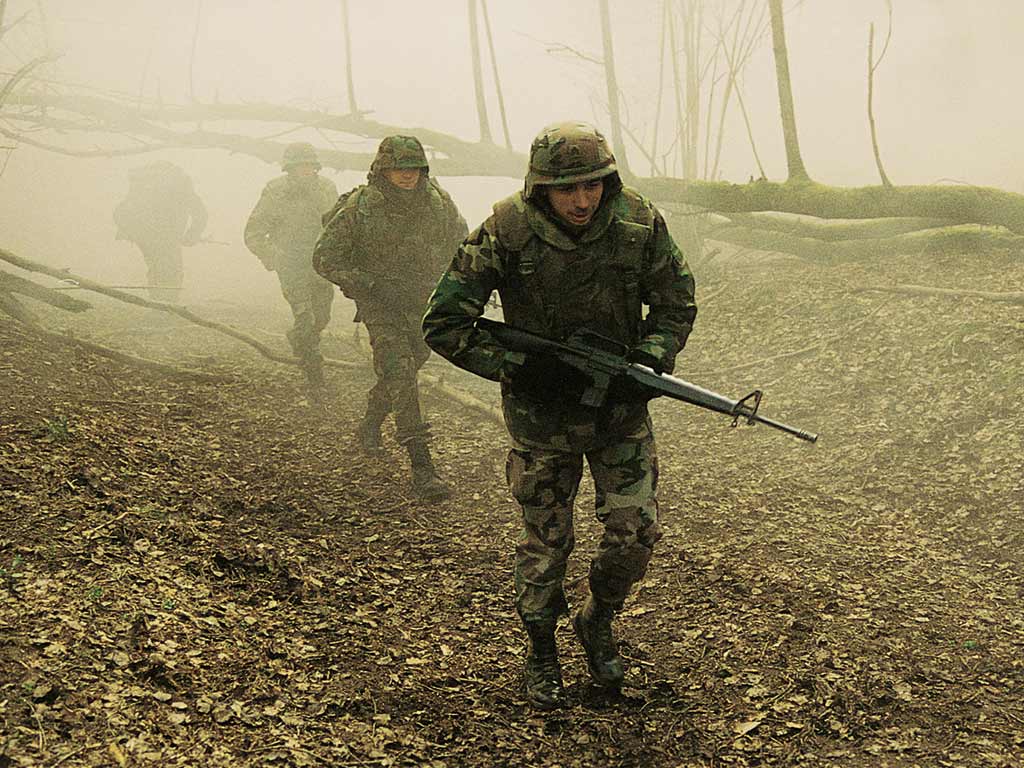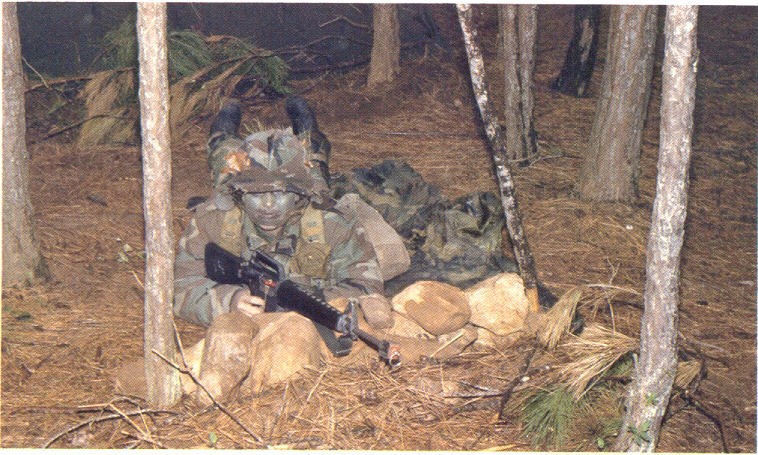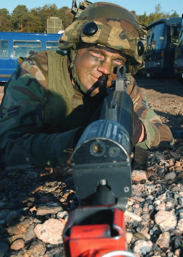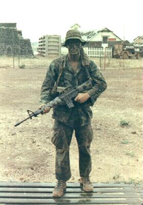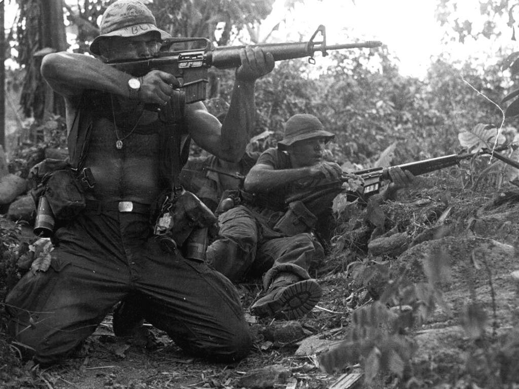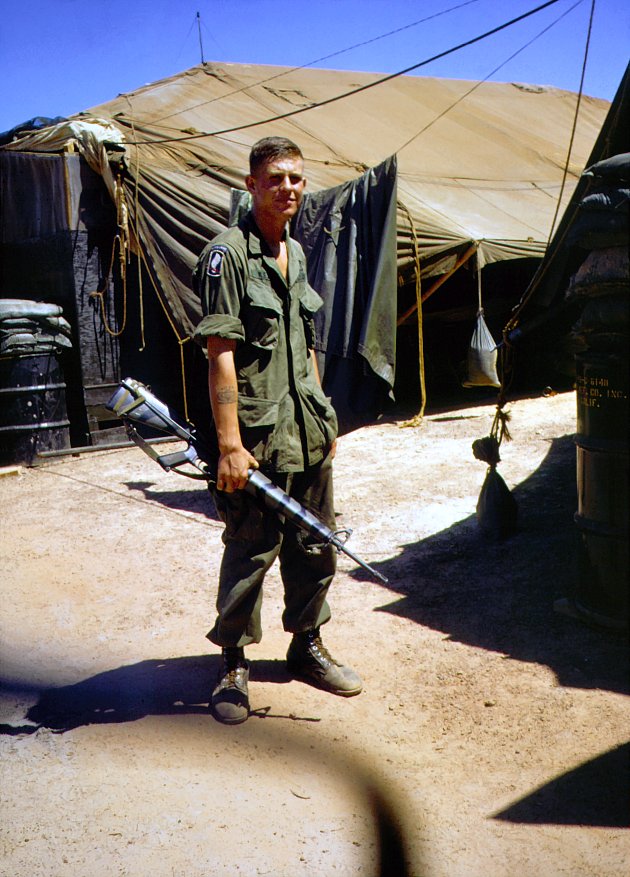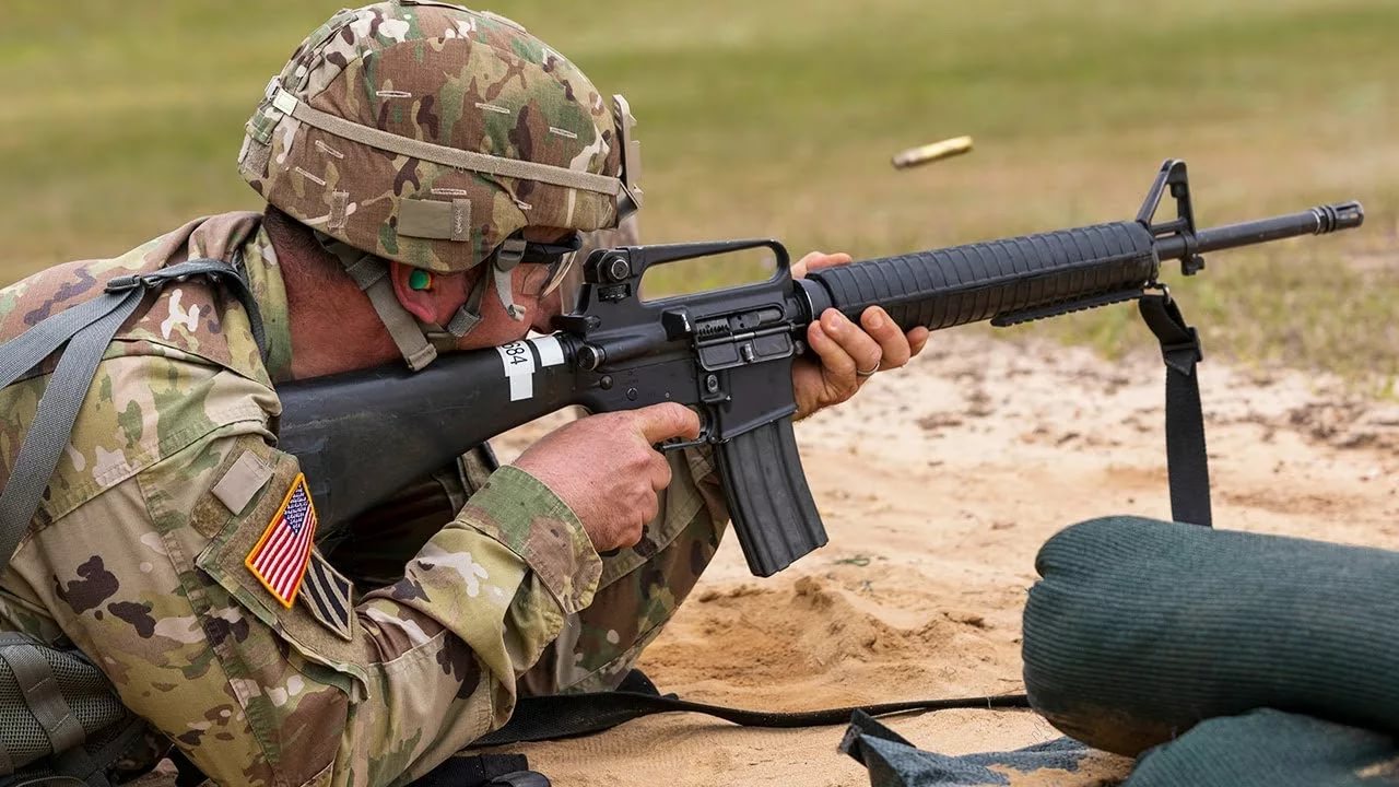 1992年洛杉矶暴动时的照片,这是手持M16A1的国民警卫队,从这个角度看,M16的机匣显得相当单薄,而护木则显得相当粗壮