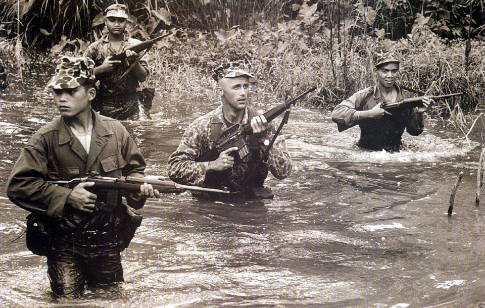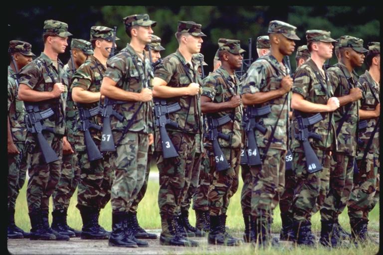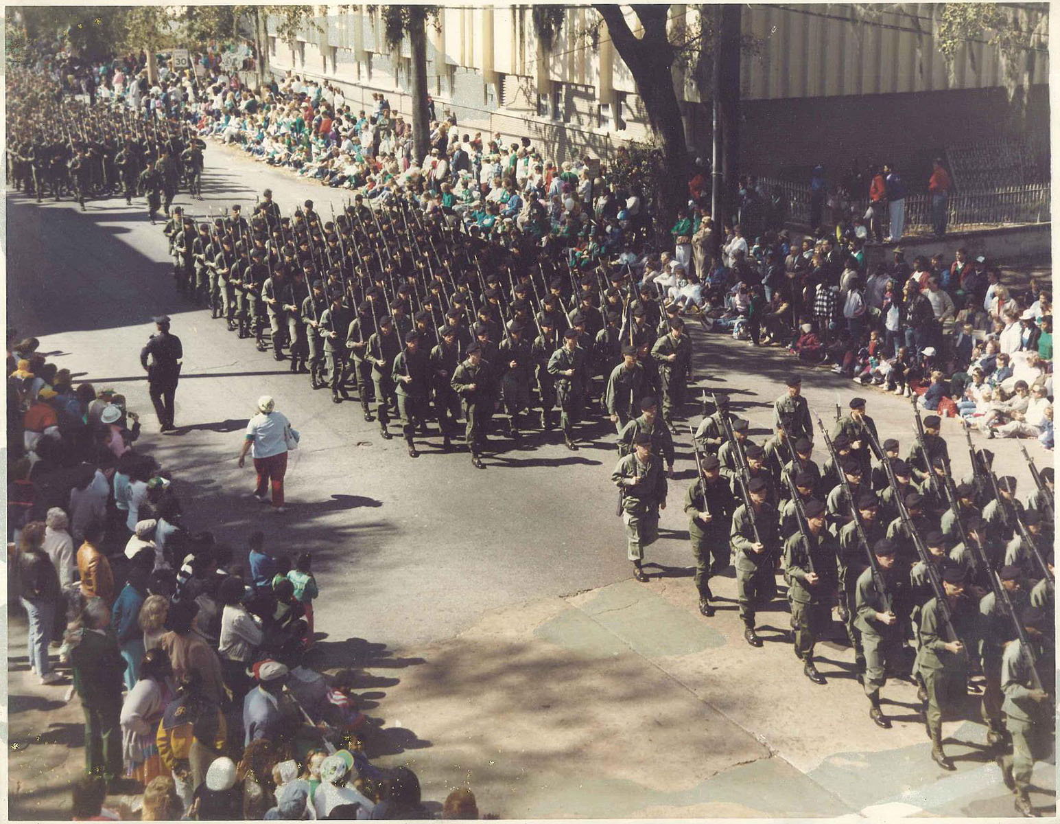 绿色贝雷帽的第1特种大队在1985年的一次巡游中肩扛着M16A2
