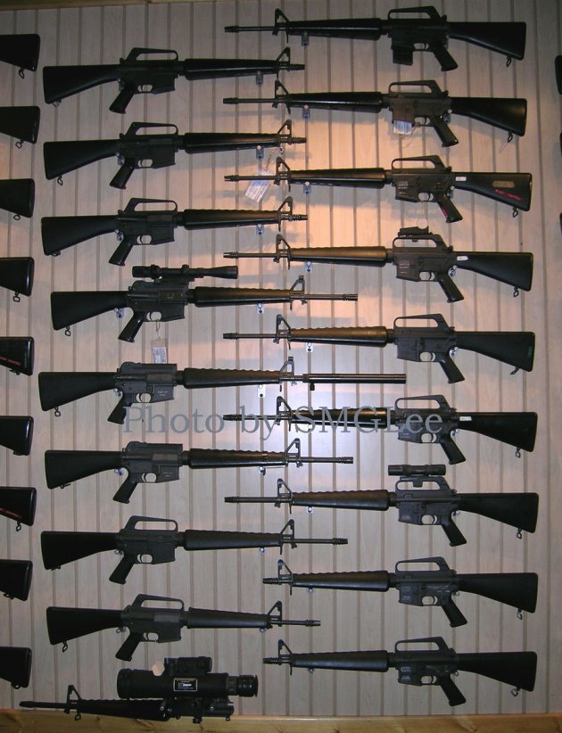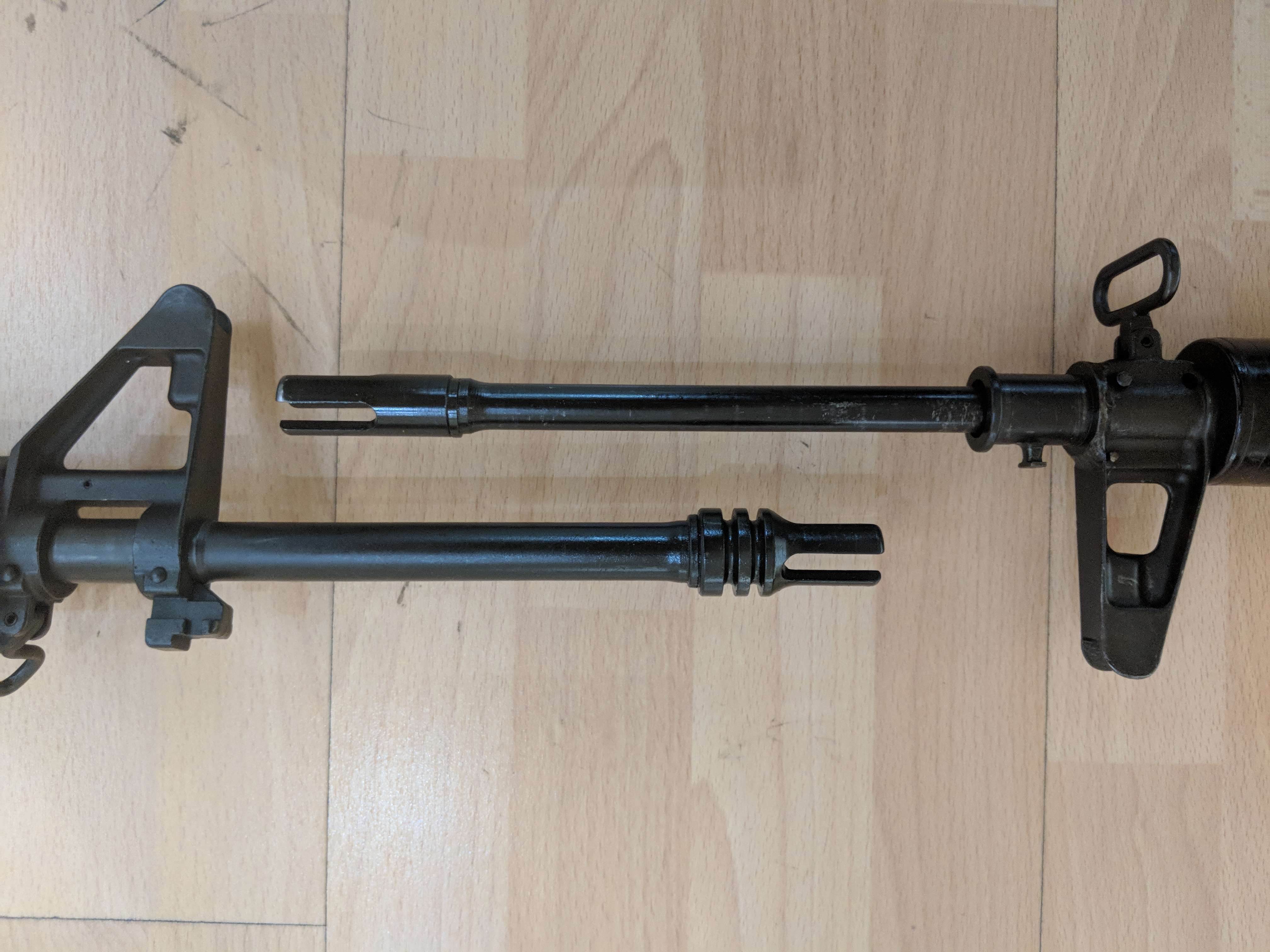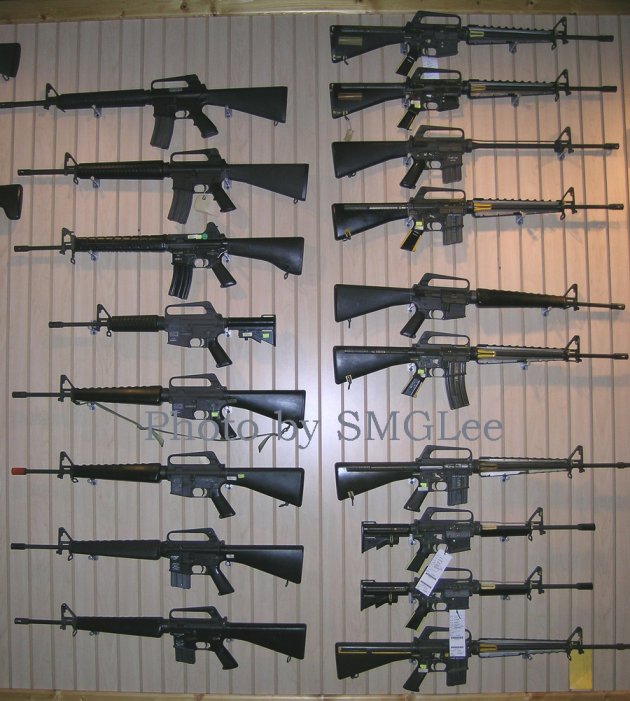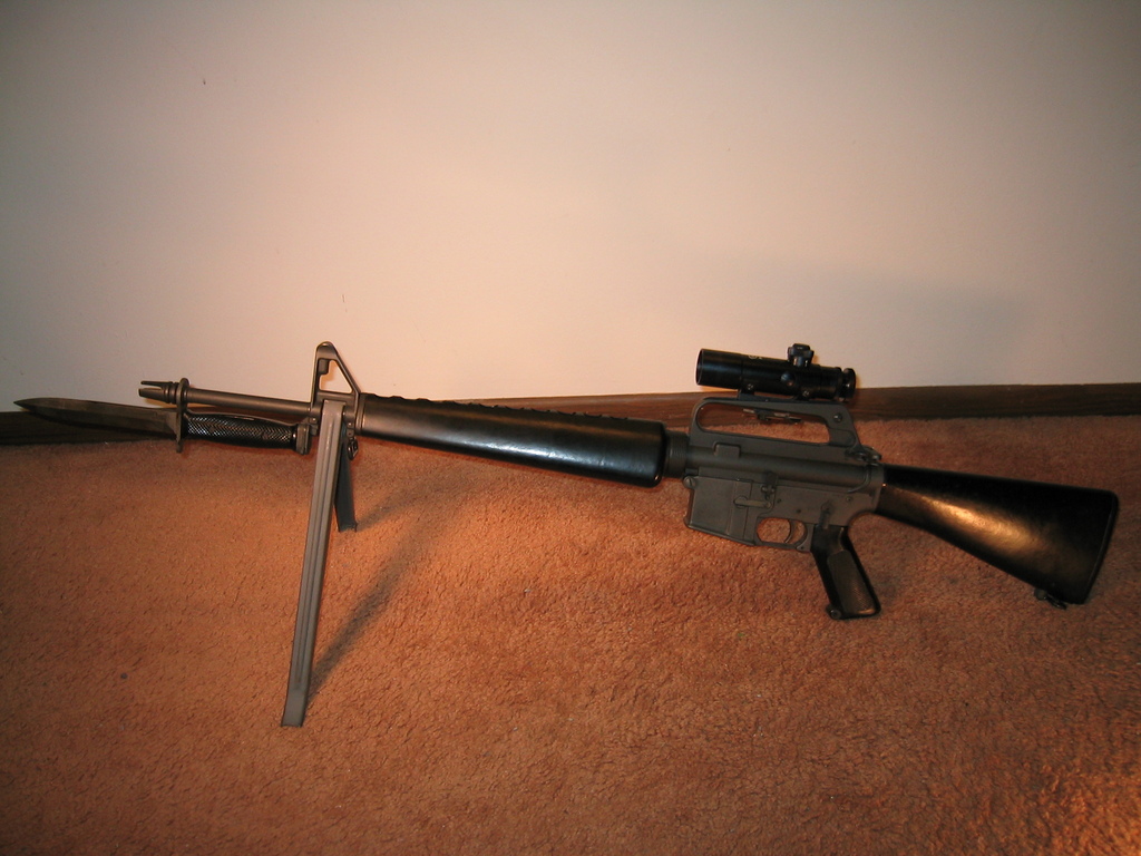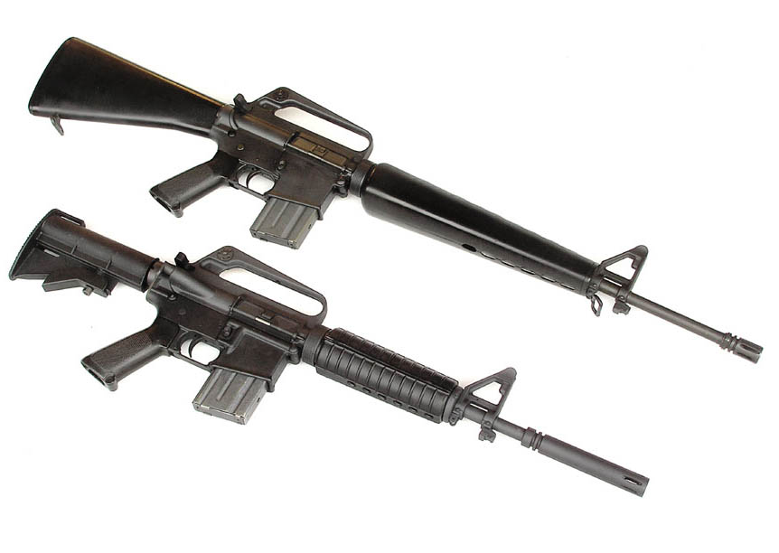 两种黑色护木和枪托的602型AR-15或603型XM16E1早期型
