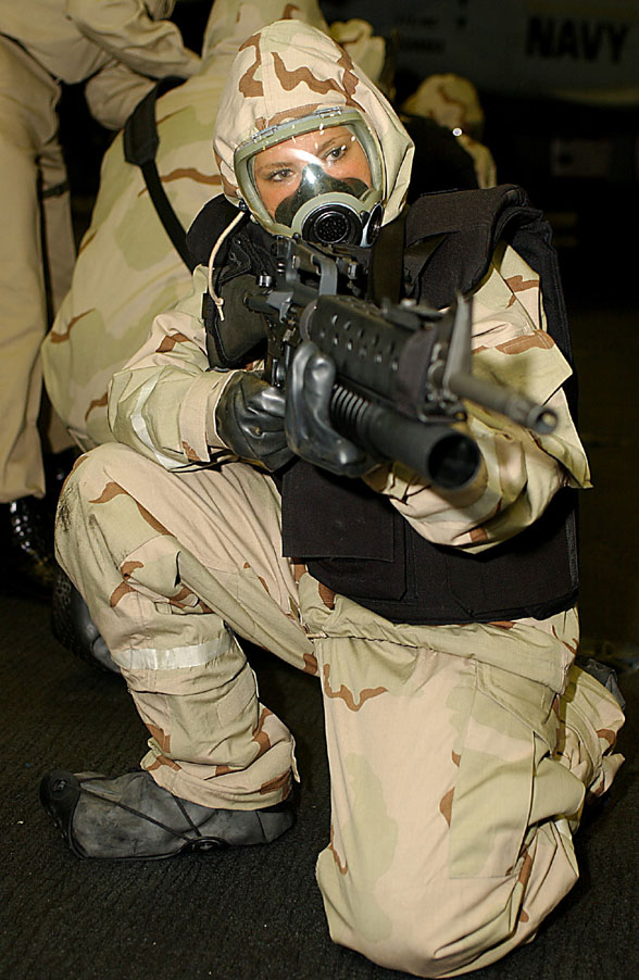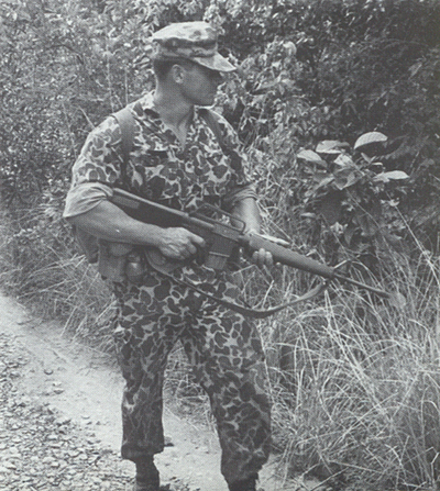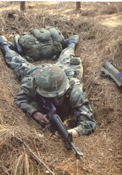 ![]() 这张在伊拉克的照片比较有意思,在M16A2上更换M5 RAS护木 |