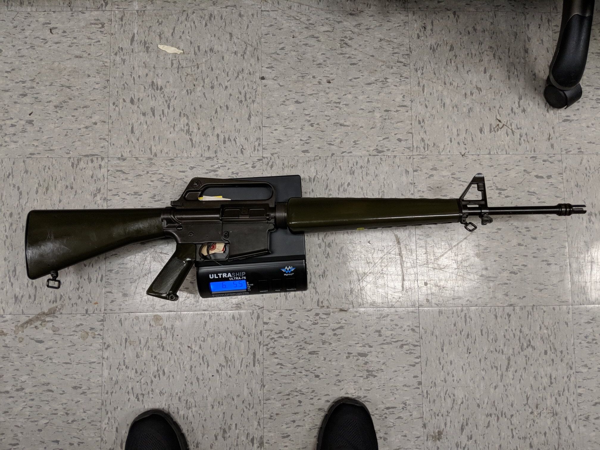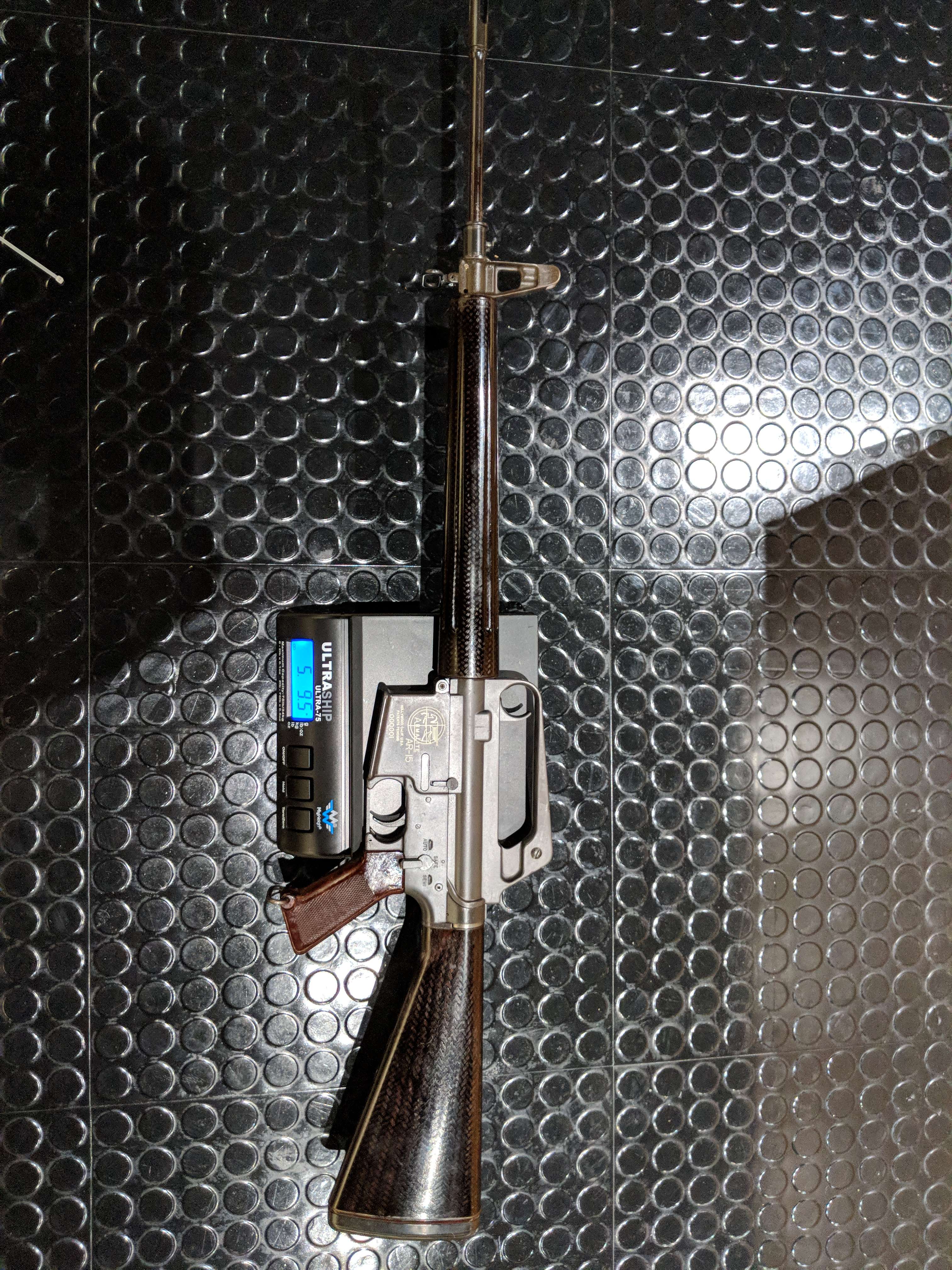 ![]() ![]() 早期绿色护木和枪托的601型AR-15 |