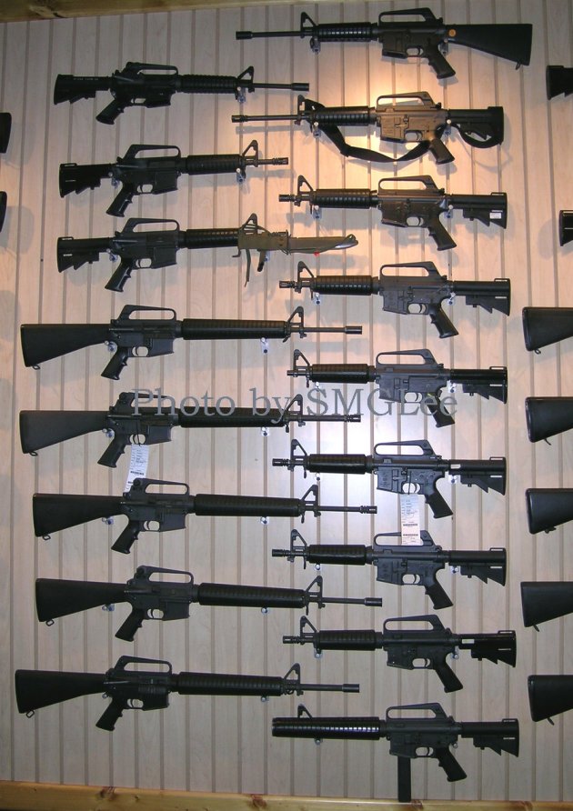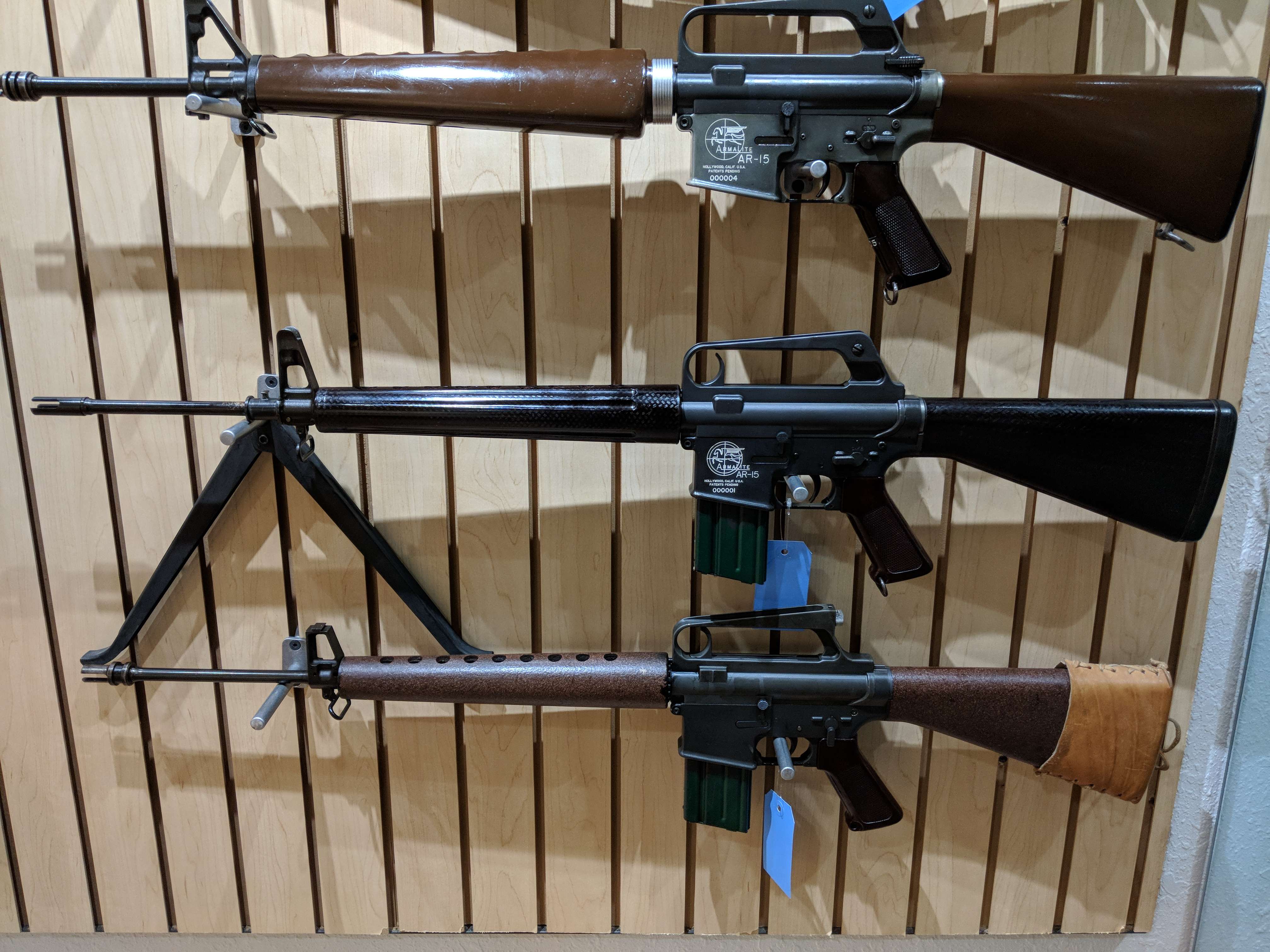 AR-15的一系列原型枪,其中大部分机匣上还印着阿玛莱特的标记