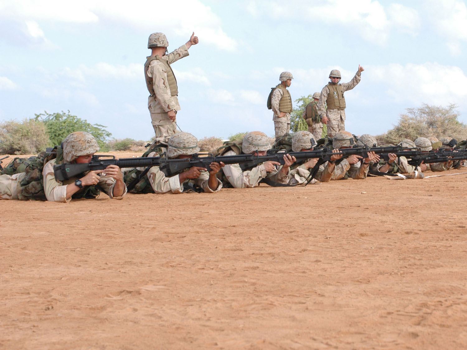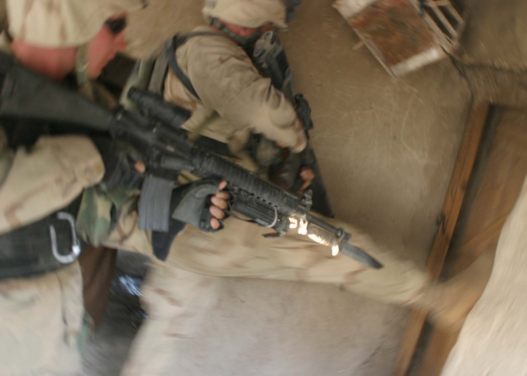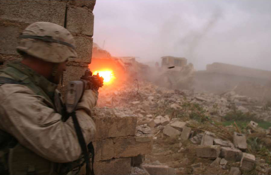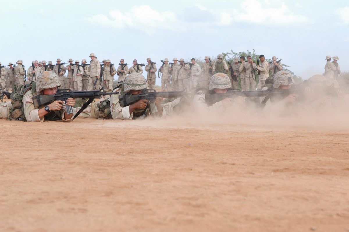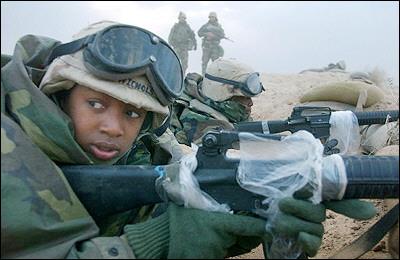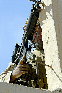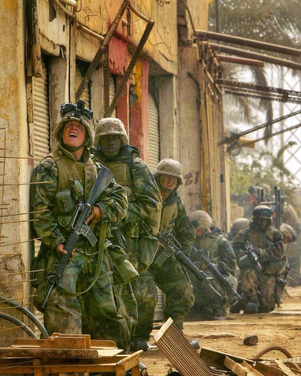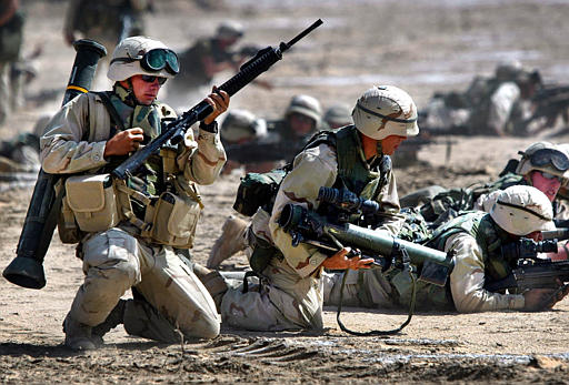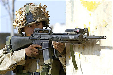 2004年海军陆战队在伊拉克已经有更多的M16A4和沙漠色的IBA