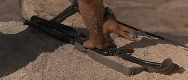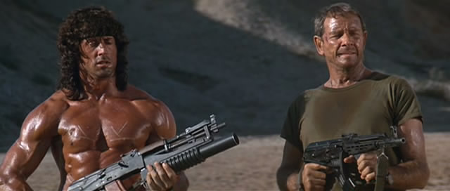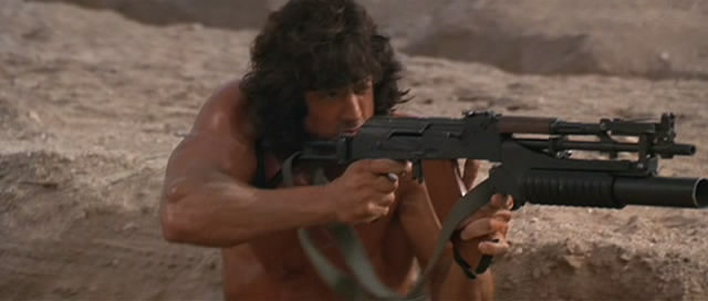 电影《RAMBO III》里面更换了伽利尔折叠枪托和下挂M203的AKM,这是以色列式的改装手法
