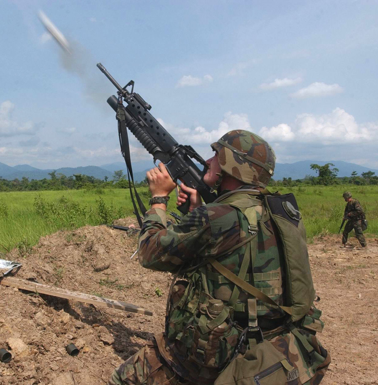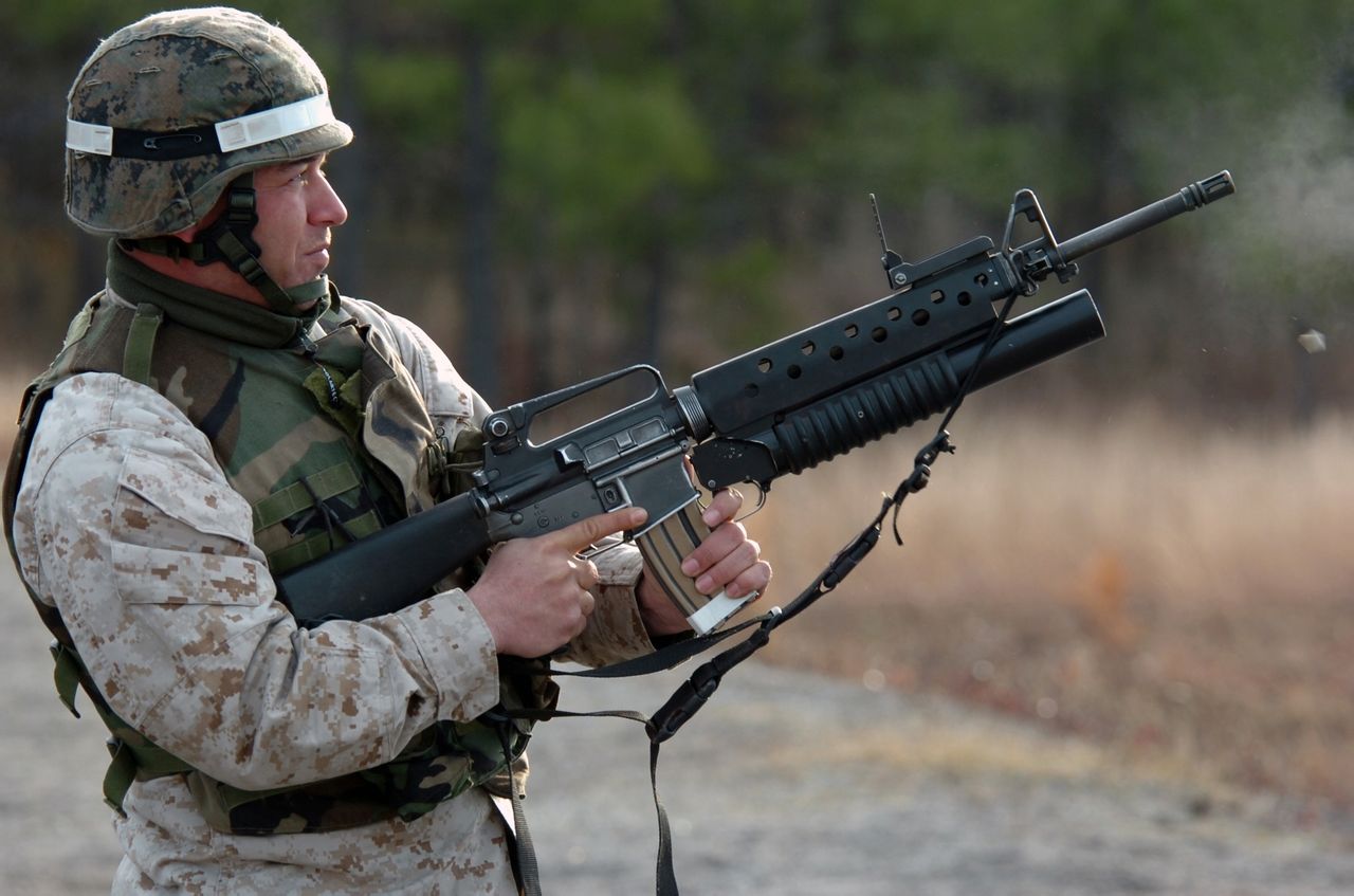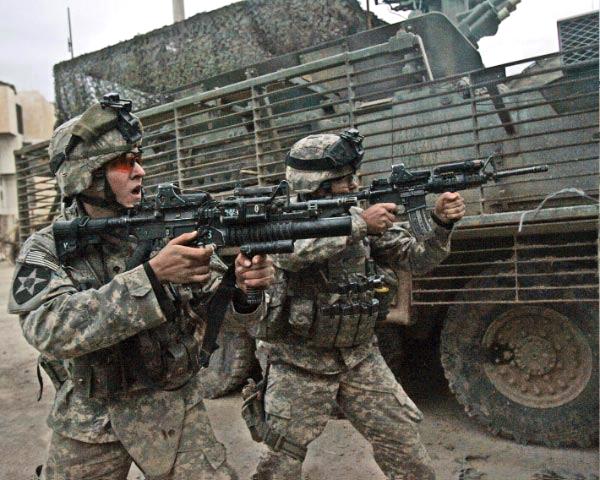| 在伊拉克的美军士兵向空旷广场发射M203解闷 | ![]() |