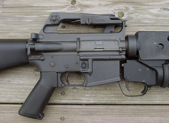 由于安装M203的护木都一样,要辨认M16A1(上)和M16A2(下)