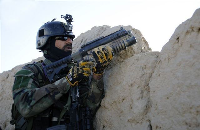 这种用M203护木安装的霰弹枪是私人改装的