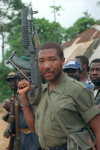 现实中,M203也可以挂到AK上使用,这是利比里亚叛军领导人Charles Taylor的照片