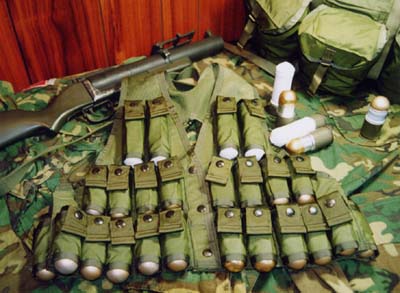 旧式的榴弹手背心,可携带24枚各式榴弹,美军新装备的MOLLE系统却没有这么多的榴弹袋,因此许多穿着OTV的榴弹手都怀念这种旧式的背心