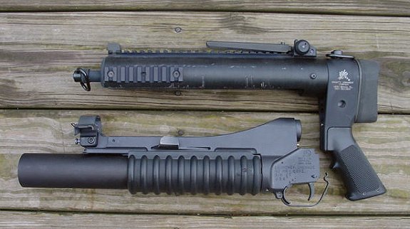 这是KAC为M203生产伸缩式枪托及握把组件,使M203也能够像M79一样单独使用