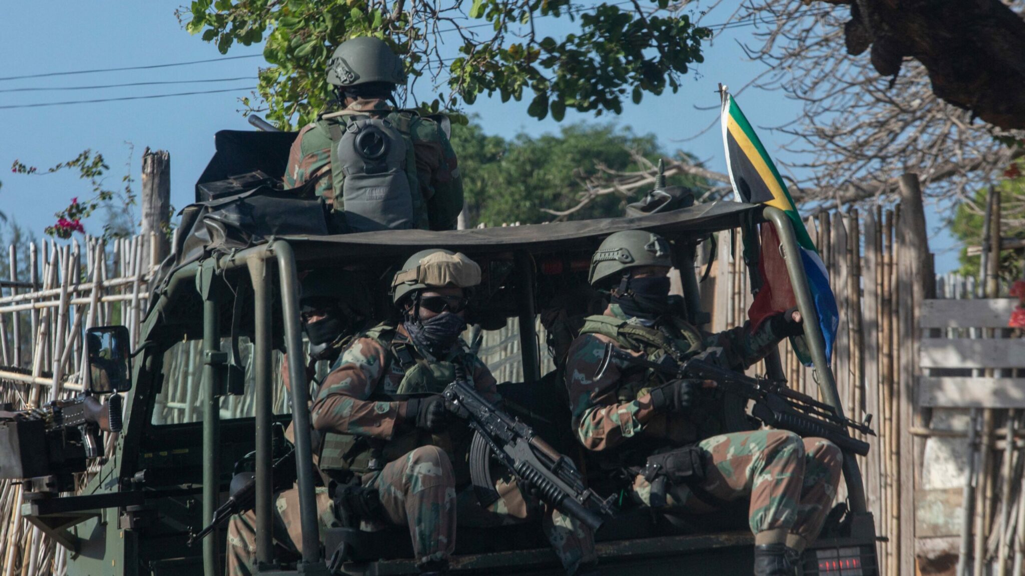 2021年,按照南部非洲发展共同体(SADC)决议下,部署在刚果民主共和国的莫桑比克维和部队,图中巡逻车尾两名莫桑比克特种兵的AKM上也同样下挂了M203榴弹发射器