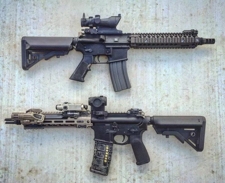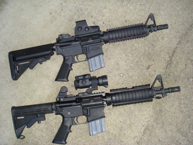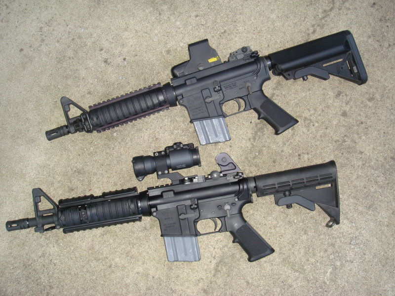 普通的M4A1(上)与更换了CQBR的“短上机匣M4A1”(下)