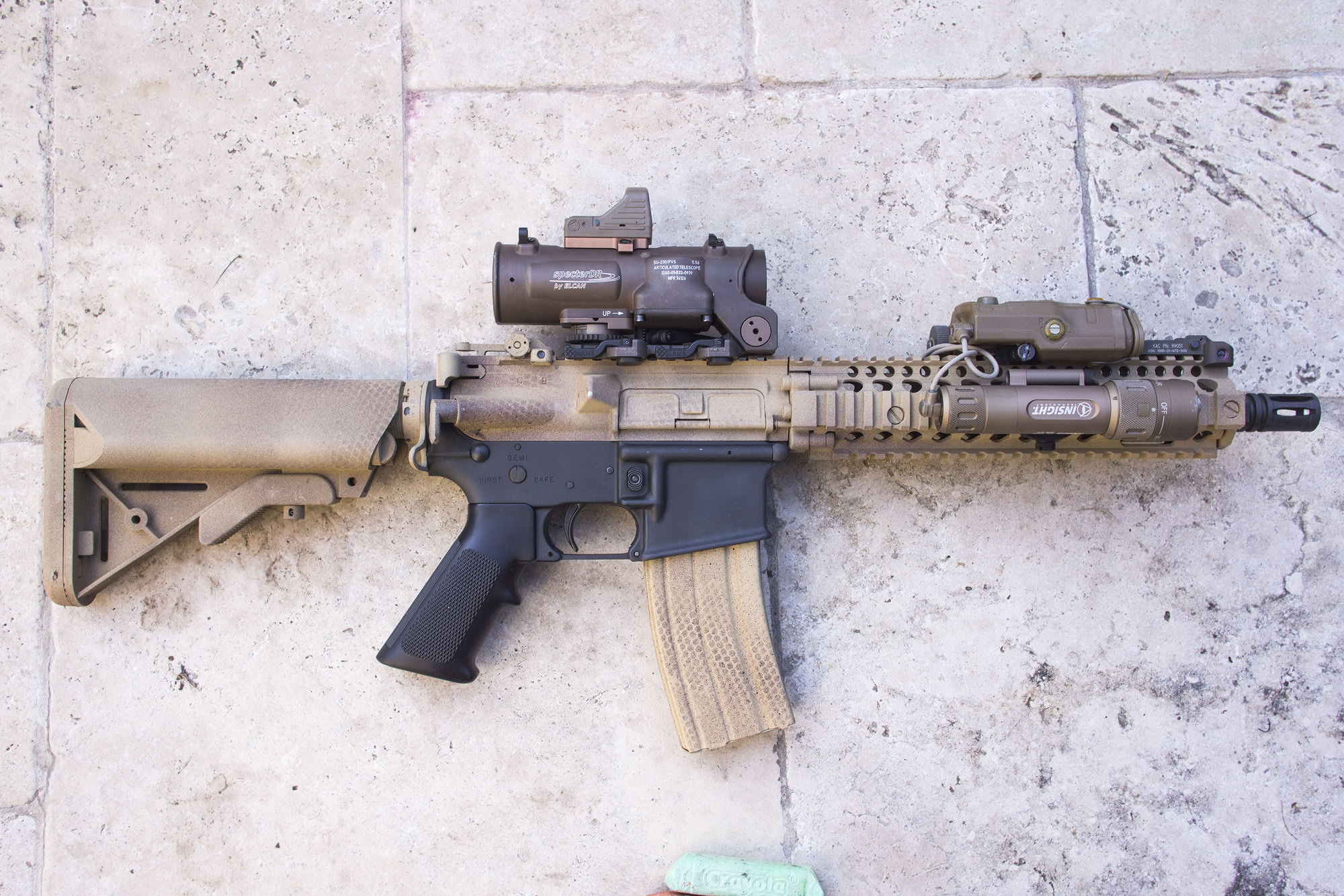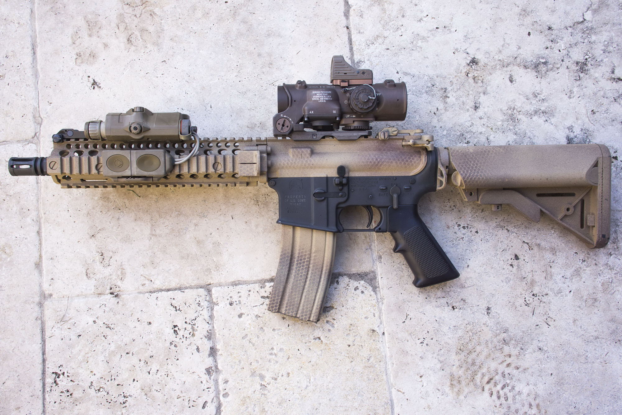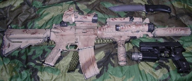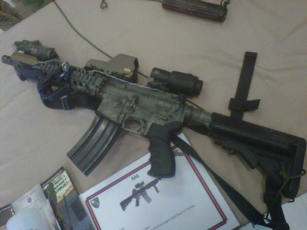 HLTVrocks在09年1月新拍的照片,这照片更有意思。拍照中数月前这些Mk18上机匣被送回Crane,取而代之的是标准的M4上机匣,但下机匣仍然是Mk18的