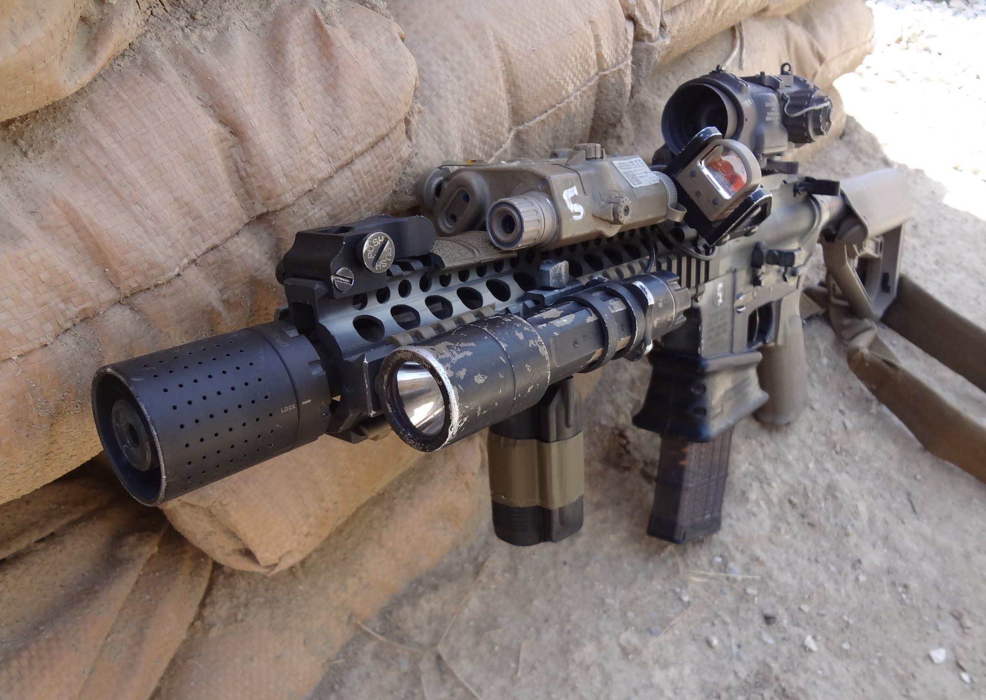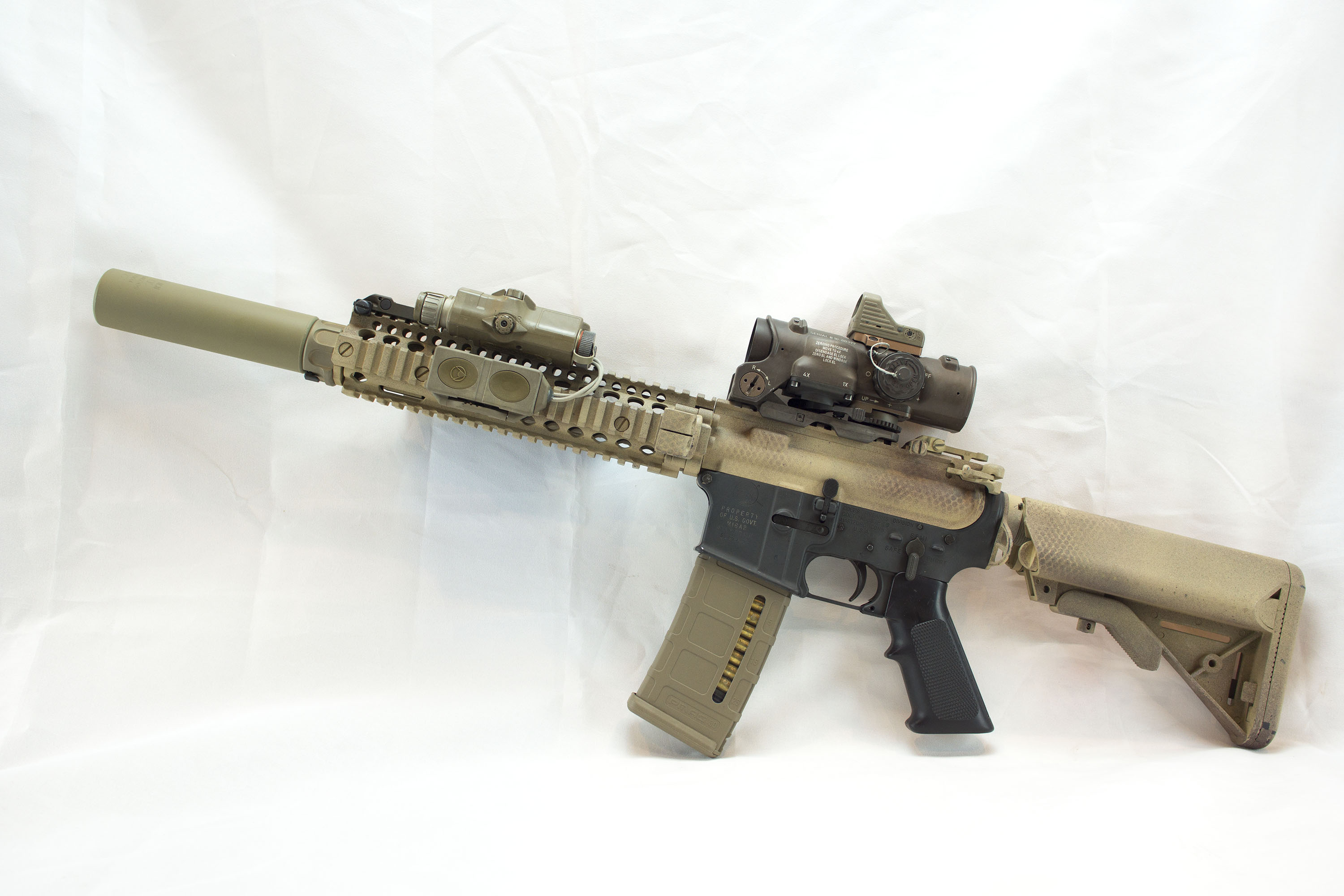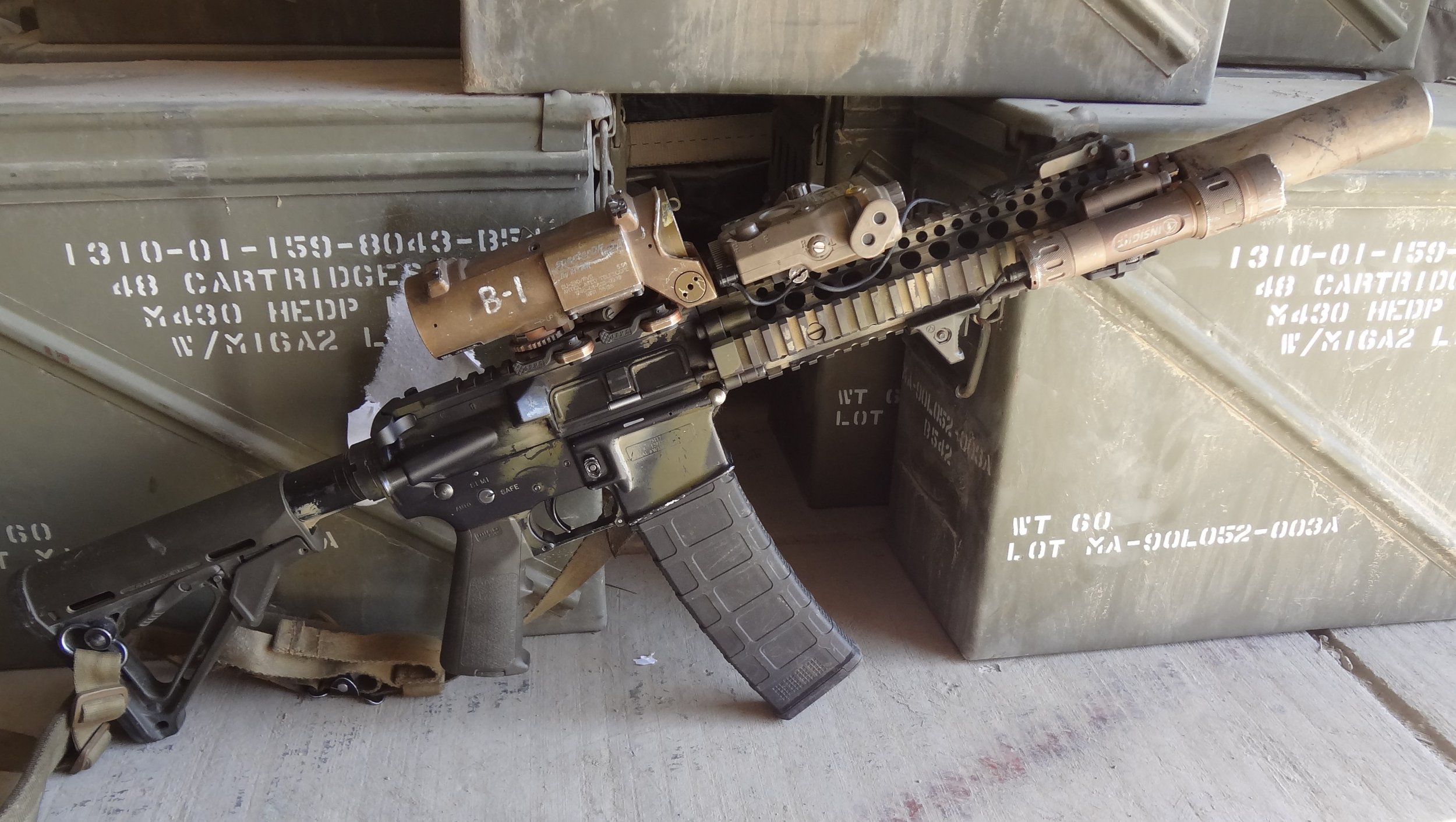 但这里有一个“Over gassed”的问题(指短枪管的M4A1和CQBR在安装消音器的情况下因为膛压增大,导致过多的火药气体进入武器动作机构的问题,其后果就是武器更容易变脏、故障率上升,并且在拉机柄处会有气体泄出扑向射手的面部等问题)。因此使用消声器的M4A1比M4A1需要更多更频繁的维护。其实后来三角洲部队会与HK公司合作研制HK416的初衷并非是他们认为M4A1不够可靠,而是寻求一种装上消声器后问题更少的短枪管AR。