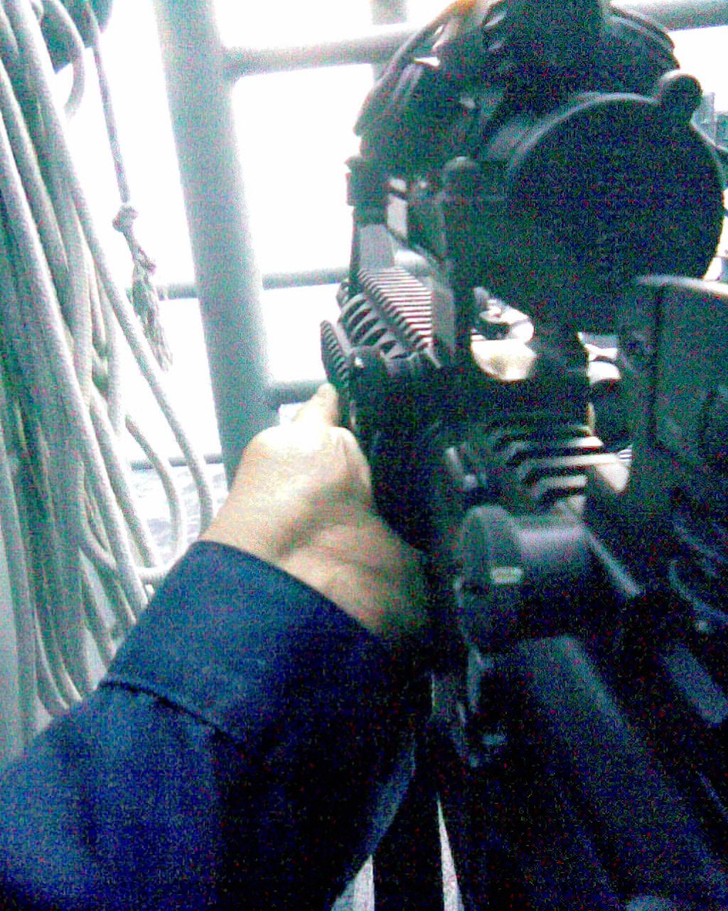 在CG-70伊利亚湖上服役的HLTVrocks用手机拍摄的Mk18,虽然不清晰,但他证实这把枪的下机匣铭文是M16A1改的