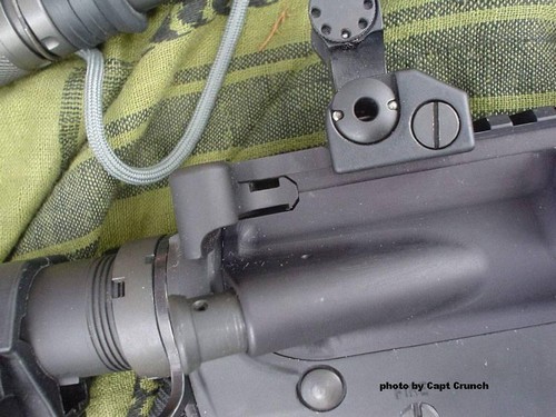 拉壳钩: 标准的4旋拉壳簧改为NSWC研制的5旋拉壳簧,目前已有厂家提供商业成品出售。用一个O圈围绕拉壳簧(前面的内容是WIKI上收集的,但前绿色贝雷帽成员Jeff Gurwich说在SOPMOD M4上就已经有这样的改进,原因是有一批枪管镀铬的铬层太厚,影响正常抽壳。然后就用了新的抽壳钩簧和这个橡胶圈增加抽壳力)。