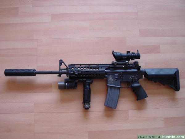 丁丁的两把爱枪,左边一把是模仿NSWC的M4 CQBR/Mk18改装的。