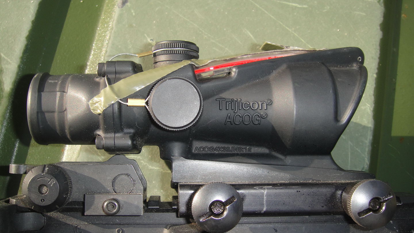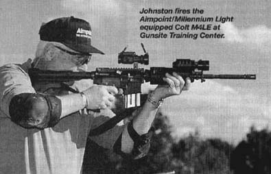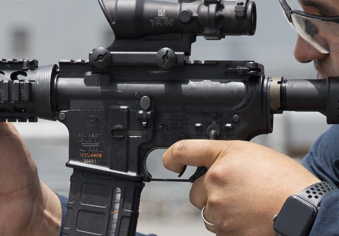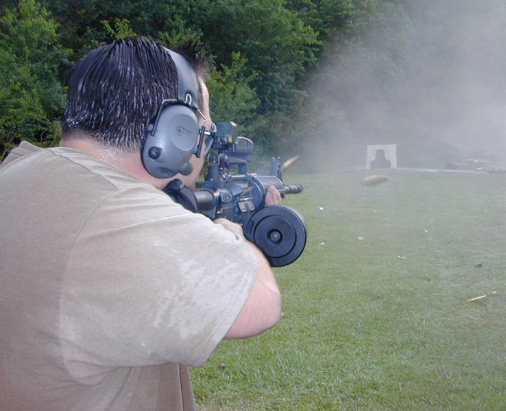 这是在拉斯维加斯附近一个射击场的照片,图中的M4A1的提把上安装了一个全息瞄准镜。