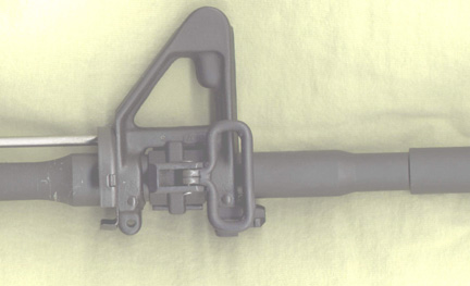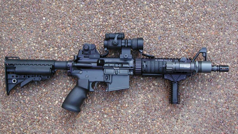 早期试验中的M4,提把上的照门是M16A1式的,不可调风偏