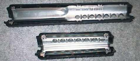 重型枪管(上)和俗称“铅笔管”的普通枪管(下)的对比,区别就在护木内包裹的部分。而SOCOM订购的枪一直都是重型枪管