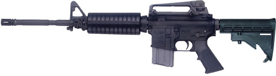 BUSHMASTER公司生产的M4A1,16英寸枪管,半自动。此枪是一位网友丁丁的合法玩具