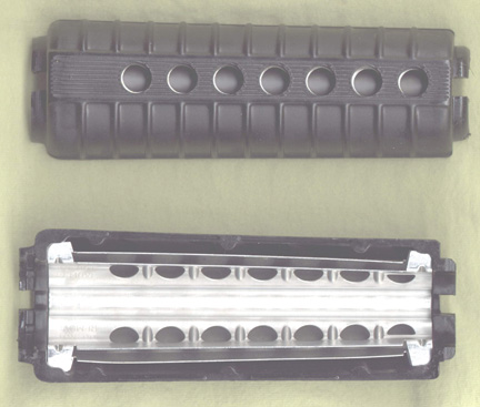 护木内的白色铝制双层隔热屏,可反射枪管的热量,在枪管过热时护木也不至于太热而不能握持
