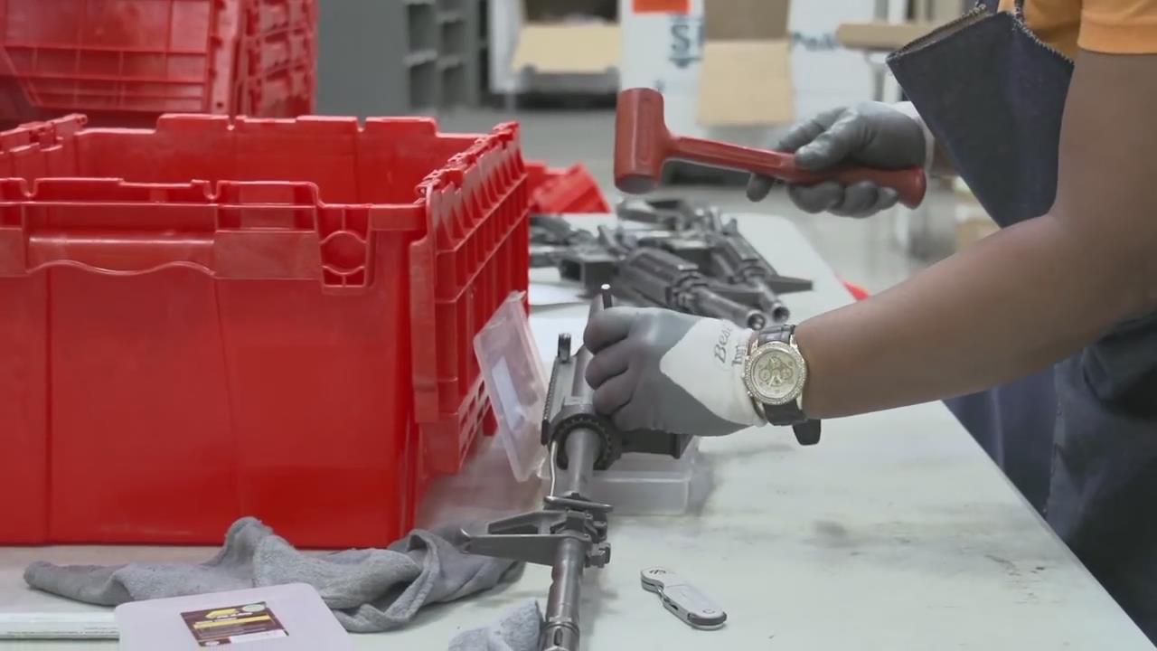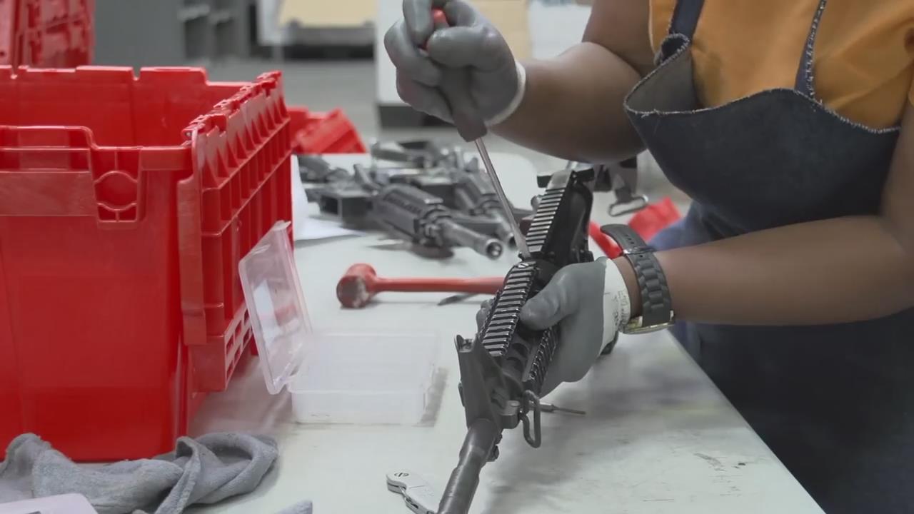 工人把下机匣拆出来,卸掉扳机组,放到机器里重新刻字,然后再装上全自动的扳机组
