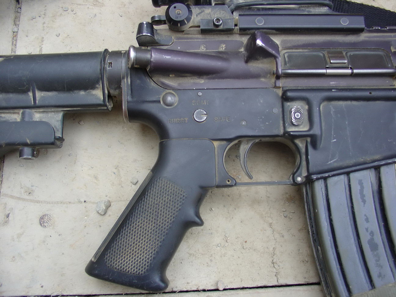 陆军M4 MWS特写,快慢机上的标记是“点射”而不是全自动,这是常规部队的武器而不是特种部队的武器