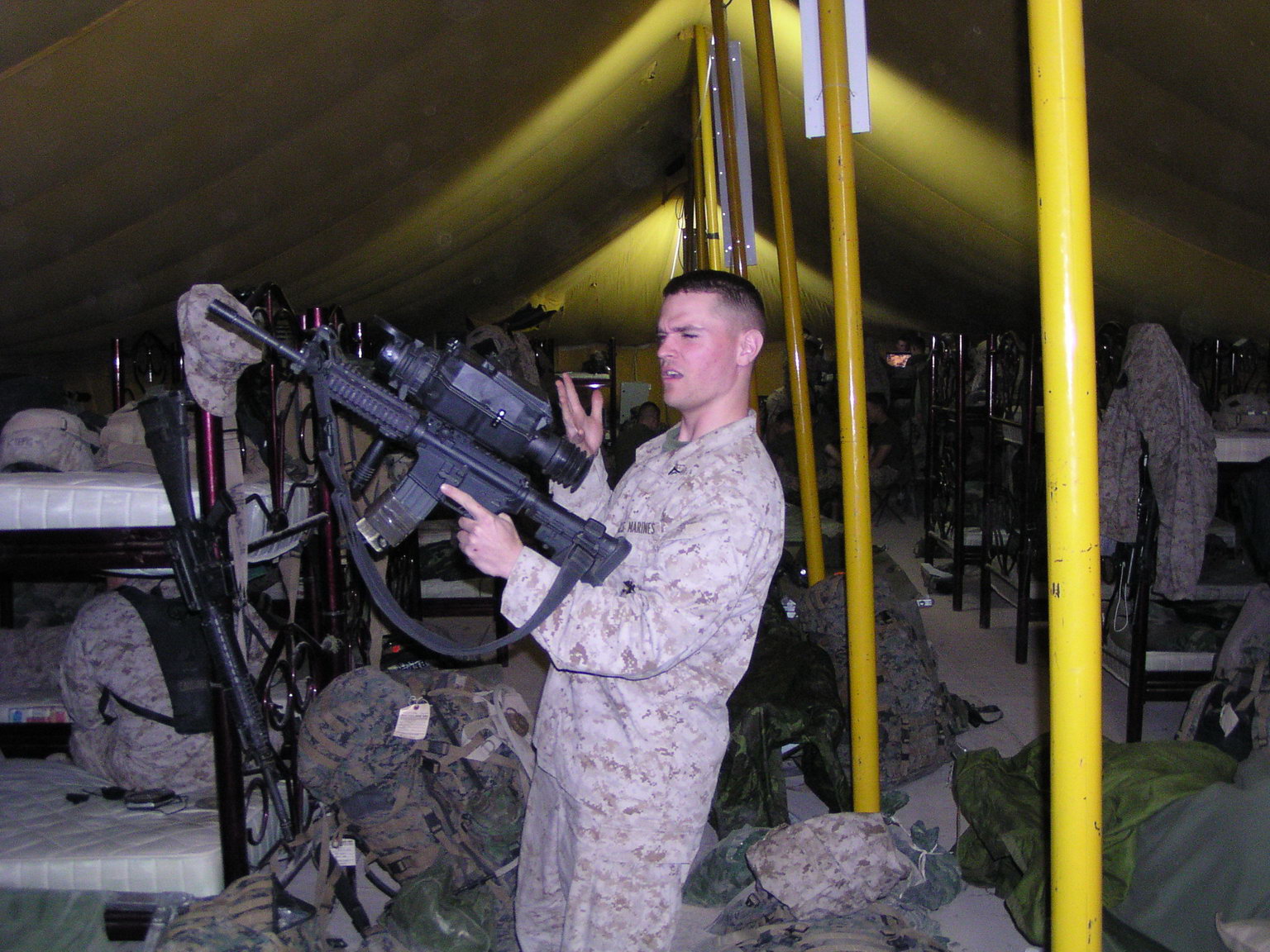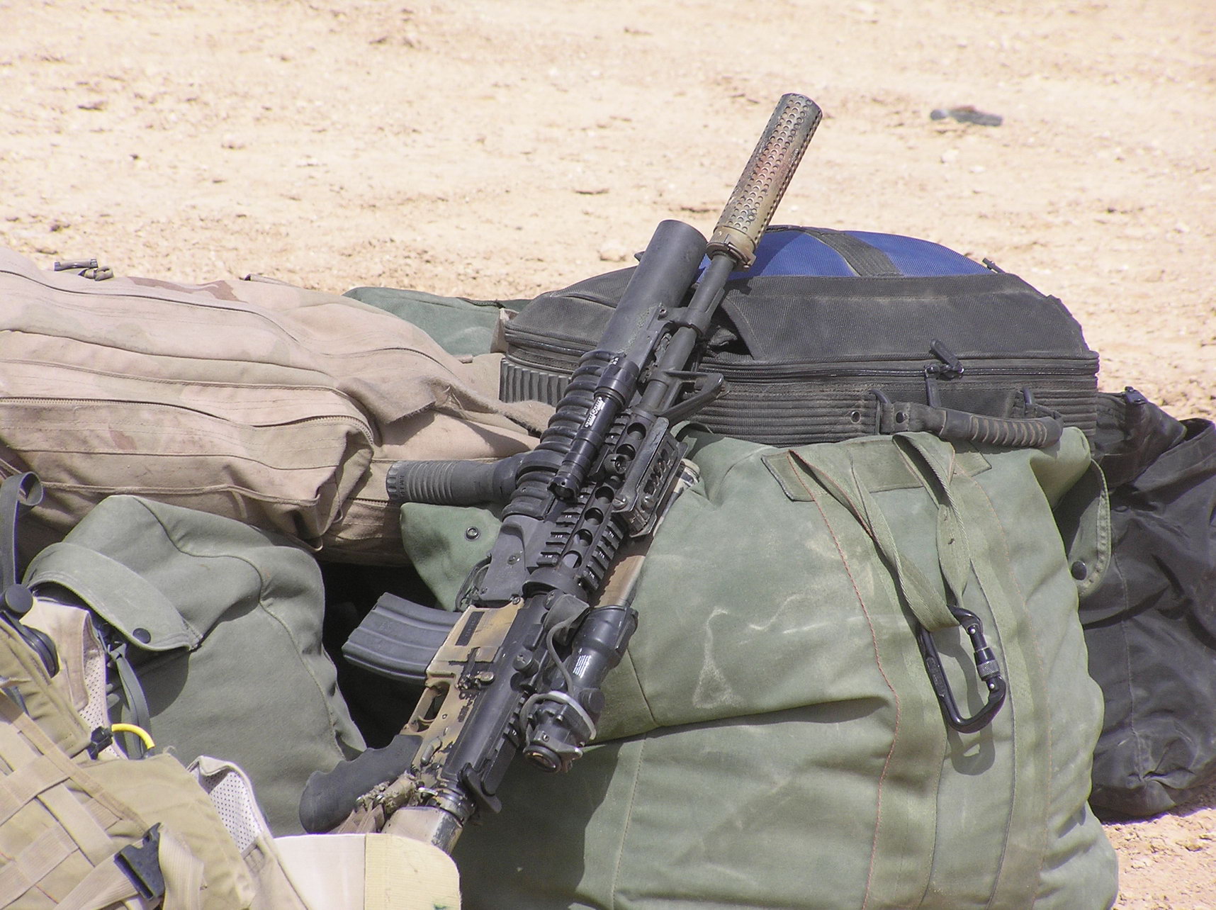 2002年在伊拉克的美国海军陆战队所装备的M4 MWS,平顶机匣及RAS护木