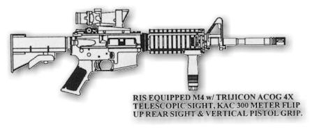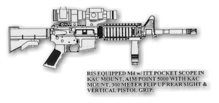 而SOPMOD M4的核心,就是安装有四面导轨的KAC RIS护木的M4A1。