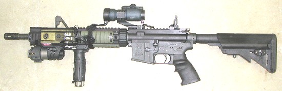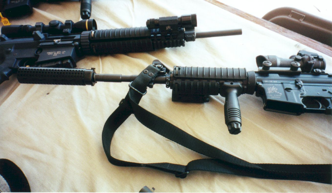 然而部分单位研究分析从越战到伊朗使馆事件等众多案例后认为即使在CQB环境下,发射步枪弹的武器也是需要的。三角洲最先意识到需要一种填补冲锋枪和M16步枪之间空白的武器,并在成立之初就重新启用了卡宾枪。虽然在1980年鹰爪行动期间,三角洲就已经把CAR-15和M16搭配使用。根据退役三角洲队员拉里·韦克斯(Larry Vickers)的自述,他在1988年进入三角洲接受OTC训练时被发到的是柯尔特的723型。在1989年巴拿马和1993年索马里的任务中,同属Tier 1的三角洲和海豹六队均使用了自己改装的CAR-15,实践证明这种发射步枪弹的短管卡宾枪是一件高效且致命的武器。后来其他特种部队也陆续跟进,纷纷采用卡宾枪作为主要武器。在军方的XM4计划被国会否决了的时候,他们的举动在一定程序上推动了SOCOM决心继续发展M4系列,并最终使M4A1成为SOCOM的制式武器。而Tier 1单位在采用CAR-15后,出于战术需要进行了各种个性化改装,而这些改装也在很大程度上影响了后来续的M4系列的发展和改进方向。可以说,无论是SOPMOD的出现,还是如今市场上各种眼花缭乱的个性化附件的出现,都有当年Tier 1单位的一份功劳。