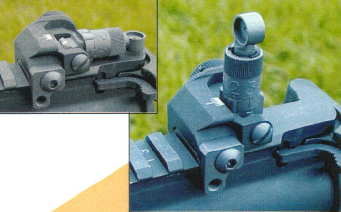 ![]() ![]() 作为后备用途的折叠式机械瞄准具也是由KAC公司生产,但很少人使用折叠的准星