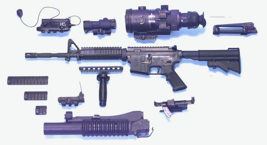 比如 在CAR-15上安装无倍率的近战瞄具,最早是OEG瞄准仪,然后是Aimpoint,再后来是各种各样的辅助瞄准装置(见AR的瞄准装置)。为了能方便安装不同类型的瞄准装置,所以一开始就定位为特种部队武器的M4A1定型的时候就已经是采用平顶机匣的设计,而同时期装备常规部队的M4却依然是固定提把。