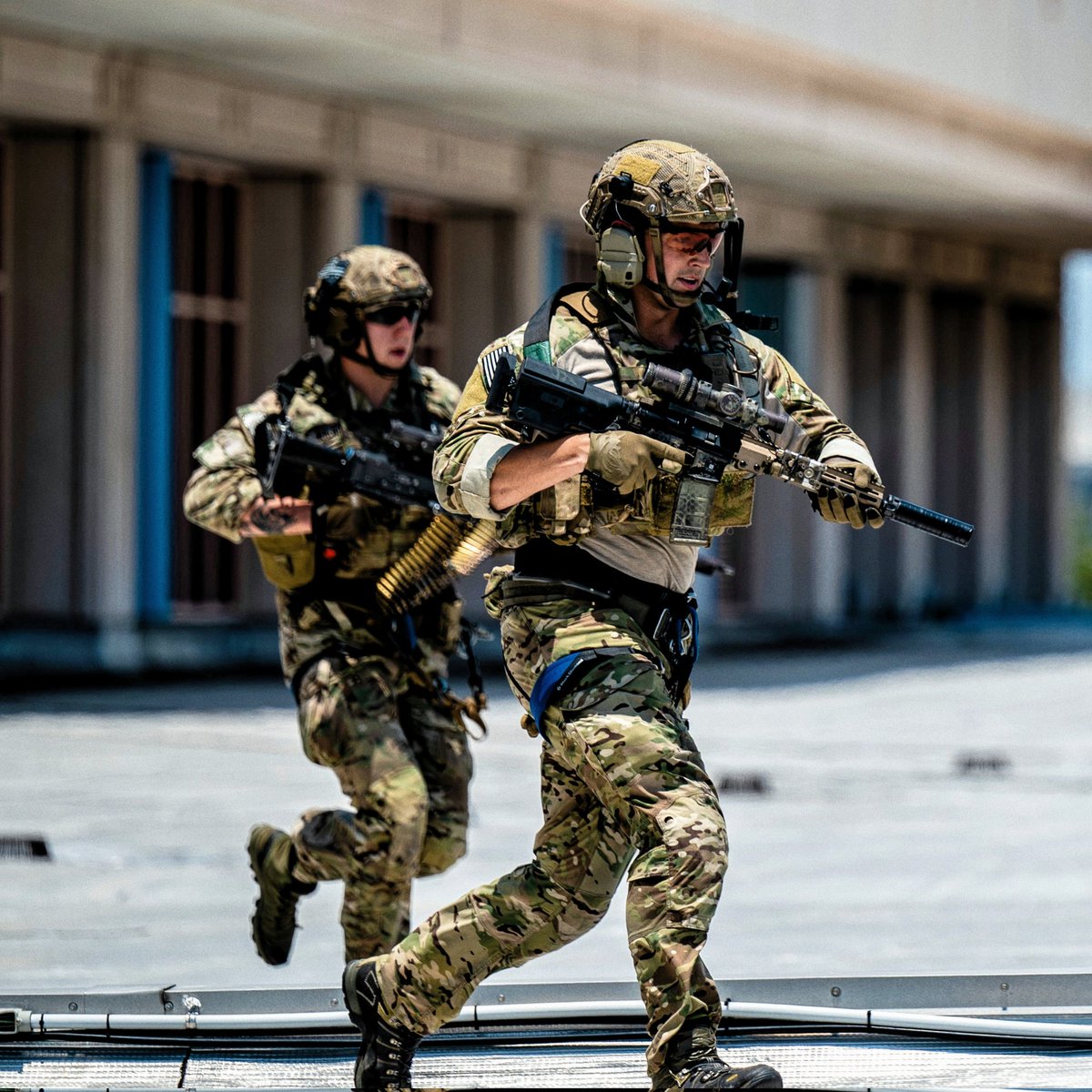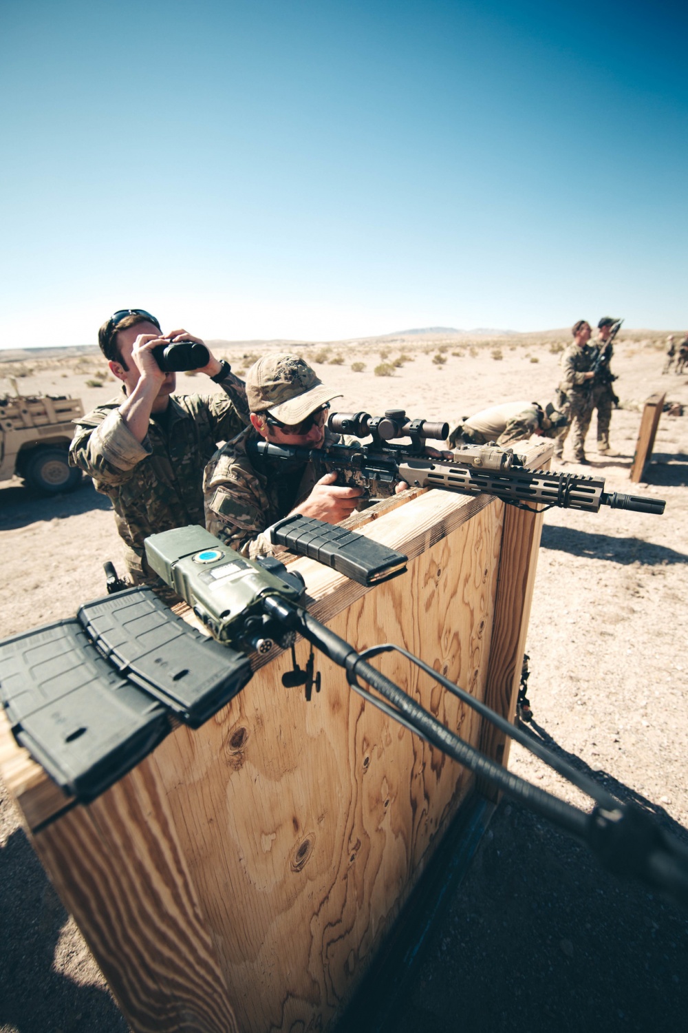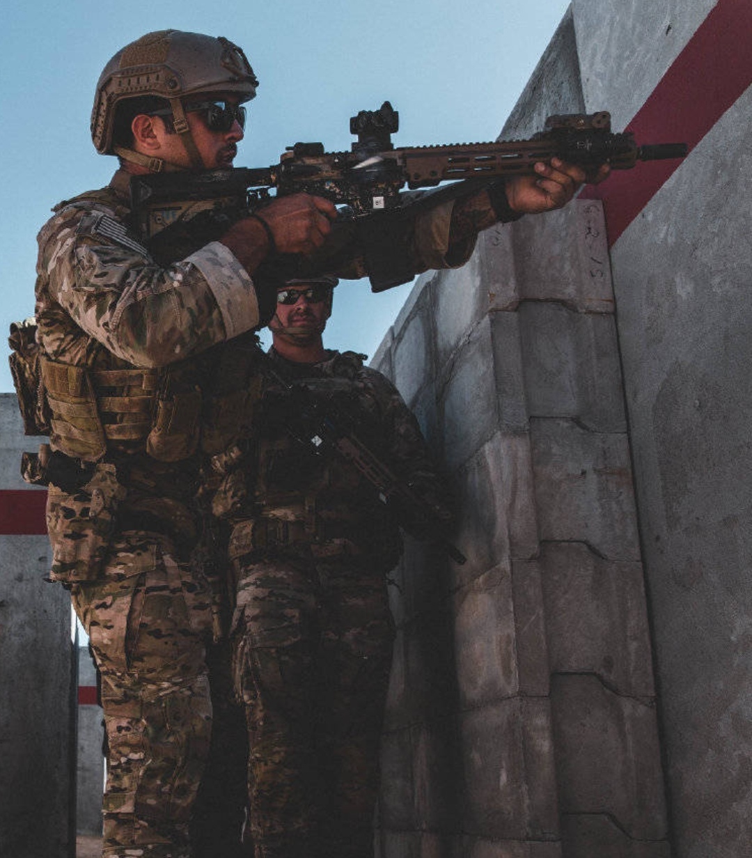 2019年10月18日,美国陆军第3特种大部在加州棕榈市的海军陆战队空中地面作战中心(MCAGCC)的训练场参加的联合战术演练中所使用的M4A1已经更换了URG-I